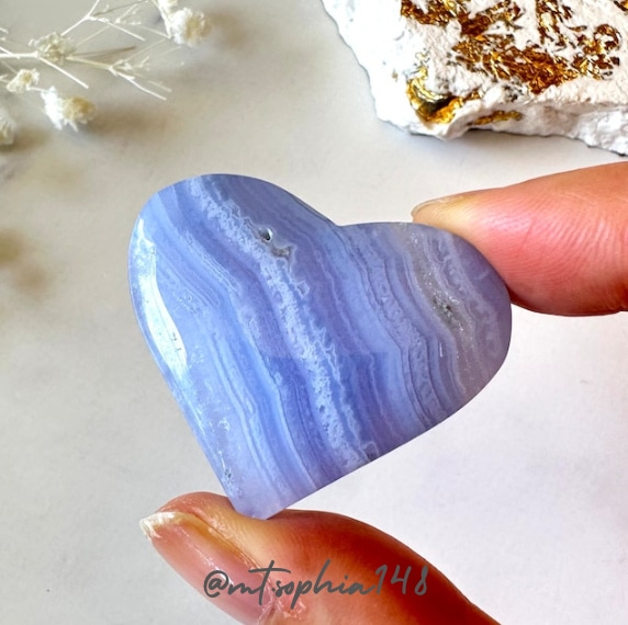 本日はレースのような模様が美しいブルーレースアゲートをご紹介します ブルーレースアゲートは淡いブルーや白色が層を作り 白いレースのような模様に見えることから その名が付けられました 和名も同じ意味で付けられており 「空色縞瑪瑙(そらいろしまめのう)」と言います 同じような色合いでも縞模様がないものは 「ブルーカルセドニー」と呼ばれています 石言葉は「友情」「平和」「清らかな愛情」 緊張緩和やリラックス効果があり 心を穏やかにし安定させてくれます 気持ちに余裕をもたらし 周りの人への思いやりの心や愛情が溢れ 信頼関係を深めたり 対人関係を豊かにするサポートをしてくれます 古代チベットでは この石の美しい模様を蓮の花に例えて 「神の石」と呼び、危険を回避する お守りにしていたそうです 忙しい毎日に追われ 心の余裕がなくなった時 ブルーレースアゲートと一緒に リラックスできる時間を作ってみてくださいね 魅力的なアイテムがたくさん入荷していますので