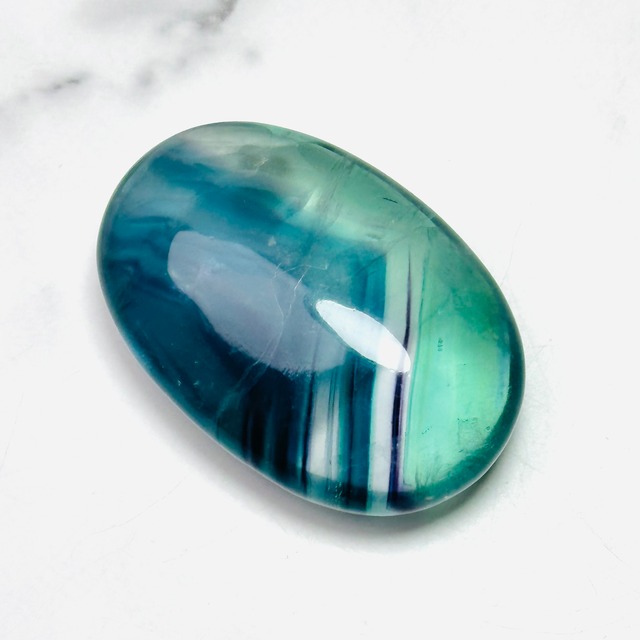 手のひらにすっと馴染むフローライトのパームストーン。美しいブルーグリーンの色合いで、握ると不思議と心が落ち着きます。光に透かすたび、幻想的な模様がふわりと浮かび上がり、穏やかな気持ちをもたらしてくれる癒しの存在です。 ◉フローライト 心の平安と知性をもたらし、発想力と直感力を養います。持ち主の停滞しているマイナスの気をリフレッシュし、悪意や邪念を防ぐ効果があるとされています。新しい流れも生み出すため、潜在能力や魅力を最大限に引き出してくれると言われています。 ◉サイズ Length:61mm 天然石の性質上、または加工や輸送によるキズ・欠け・穴・内包物等が見られることがございます。それらの全てをお伝えしきれない場合もございますので、予めご了承ください。また、極力実物通りの表現を心がけておりますが、天然石の性質撮影環境、お使いのデバイス等により、実物と相違があると感じることがあるかもしれません。商品について気になる点がございましたら、ご購入前にお問い合わせください。ご注文後のキャンセルはできません。