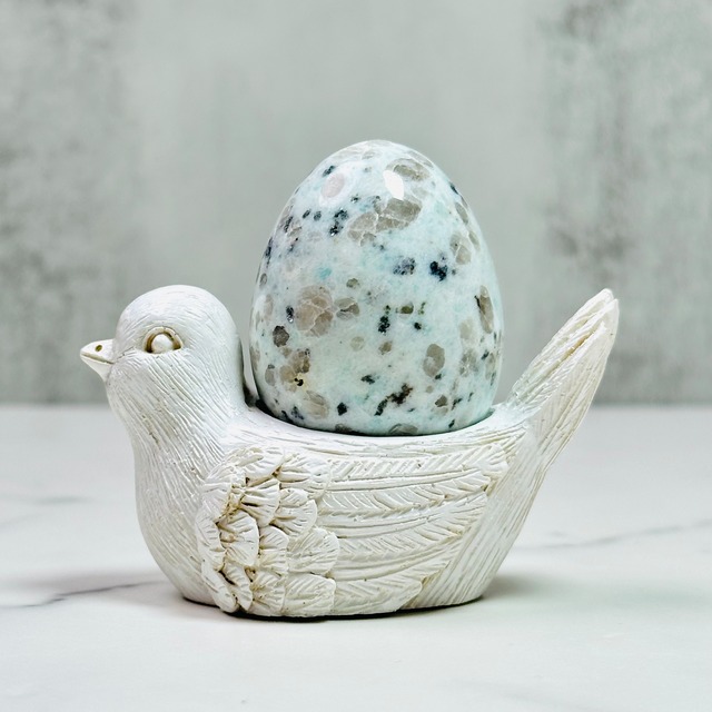 柔らかなピンク色が魅力のピンクオパールのマーメイド。優しい色合いと愛らしい姿は、眺めているだけで癒されます。デスクやリビング、ベッドサイドにそっと飾れば、特別な癒しの空間に。大切な方への贈り物にもぴったりの天然石オブジェです。 ◉ピンクオパール オパールの一種であるピンクオパールは、その淡いピンク色から「愛情を育む石」とも呼ばれます。主な産地はペルーやオーストラリアなど。乳白色を帯びた優しい色合いは、女性らしさや可憐さを象徴する石として人気があります。古来より心を穏やかにし、愛を引き寄せる石と伝えられています。 乾燥すると表面が白っぽくなりますが、無色透明のオイル(ミネラルオイル等)を少量なじませて保湿すると美しい風合いを取り戻します。直射日光や乾燥を避け、優しく扱うことで、長く可愛らしい色合いをお楽しみいただけます。 ◉サイズ Height:100mm 天然石の性質上、または加工や輸送によるキズ・欠け・穴・内包物等が見られることがございます。それらの全てをお伝えしきれない場合もございますので、予めご了承ください。また、極力実物通りの表現を心がけておりますが、天然石の性質や撮影環境、お使いのデバイス等により、実物と相違があると感じることがあるかもしれません。商品について気になる点がございましたら、ご購入前にお問い合わせください。ご注文後のキャンセルはできません。