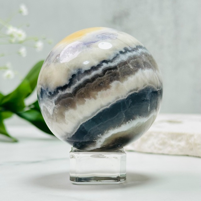 フローライトの天然石スフィア。濃いめのプラムピンクと淡いグリーンの色彩が大人っぽい印象です。光にかざすとほんのり透け感があり、内側がキラキラしてとても可愛らしく、空間を柔らかく彩ります。 ◉フローライト フローライトは「集中力」や「癒し」の象徴とされる石で、心を整え、頭をすっきりさせたいときにぴったりの天然石です。カラーバリエーションが豊富で、特にピンク系は感情を穏やかに整え、優しさを引き出すといわれています。デスク周りやベッドサイドなどに置くことで、穏やかな空間を演出します。 ◉サイズ Diameter:Φ30mm 天然石の性質上、または加工や輸送によるキズ・欠け・穴・内包物等が見られることがございます。それらの全てをお伝えしきれない場合もございますので、予めご了承ください。 また、極力実物通りの表現を心がけておりますが、天然石の性質撮影環境、お使いのデバイス等により、実物と相違があると感じることがあるかもしれません。商品について気になる点がございましたら、ご購入前にお問い合わせください。ご注文後のキャンセルはできません。