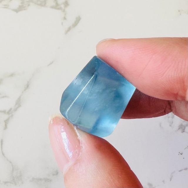 アクアマリンのルースです。高い透明度と濃いブルーがとても綺麗です。 お守り石として持ち歩いたり、クリスタルグリッドに使ったり、ペンダントトップにして身につけるのもおすすめです。 ◉アクアマリン アクアマリンは青色のベリル(緑柱石)で、ラテン語の「海水」を語源としています。緑柱石のうち透明感があり青い色調のものをアクアマリンと呼んでいます。主要原産地はマダガスカル、ブラジル、シベリアなどです。「幸せな結婚」を象徴し、子宝に恵まれる石としても人気の石なので、結婚を控えた方への贈りものとしても喜ばれます。3月の誕生石です。 ◉サイズ Length:20mm Weight:6g ※手持ちの写真が実際のお色味に近いです 天然石の性質上、または加工や輸送によるキズ・欠け・穴・内包物等が見られることがございます。それらの全てをお伝えしきれない場合もございますので、予めご了承ください。 また、極力実物通りの表現を心がけておりますが、天然石の性質や撮影環境、お使いのデバイス等により、実物と相違があると感じることがあるかもしれません。商品について気になる点がございましたら、ご購入前にお問い合わせください。ご注文後のキャンセルはできません。