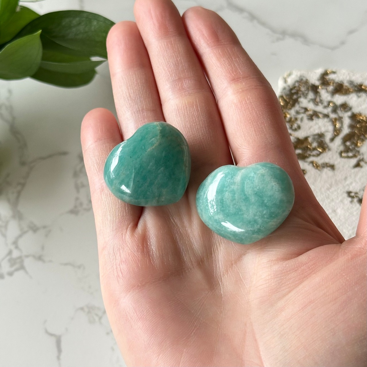 エメラルドグリーンの発色が綺麗なアマゾナイトのミニハート。精神面に作用するアマゾナイトは疲れた時に安心できるアイテムです。