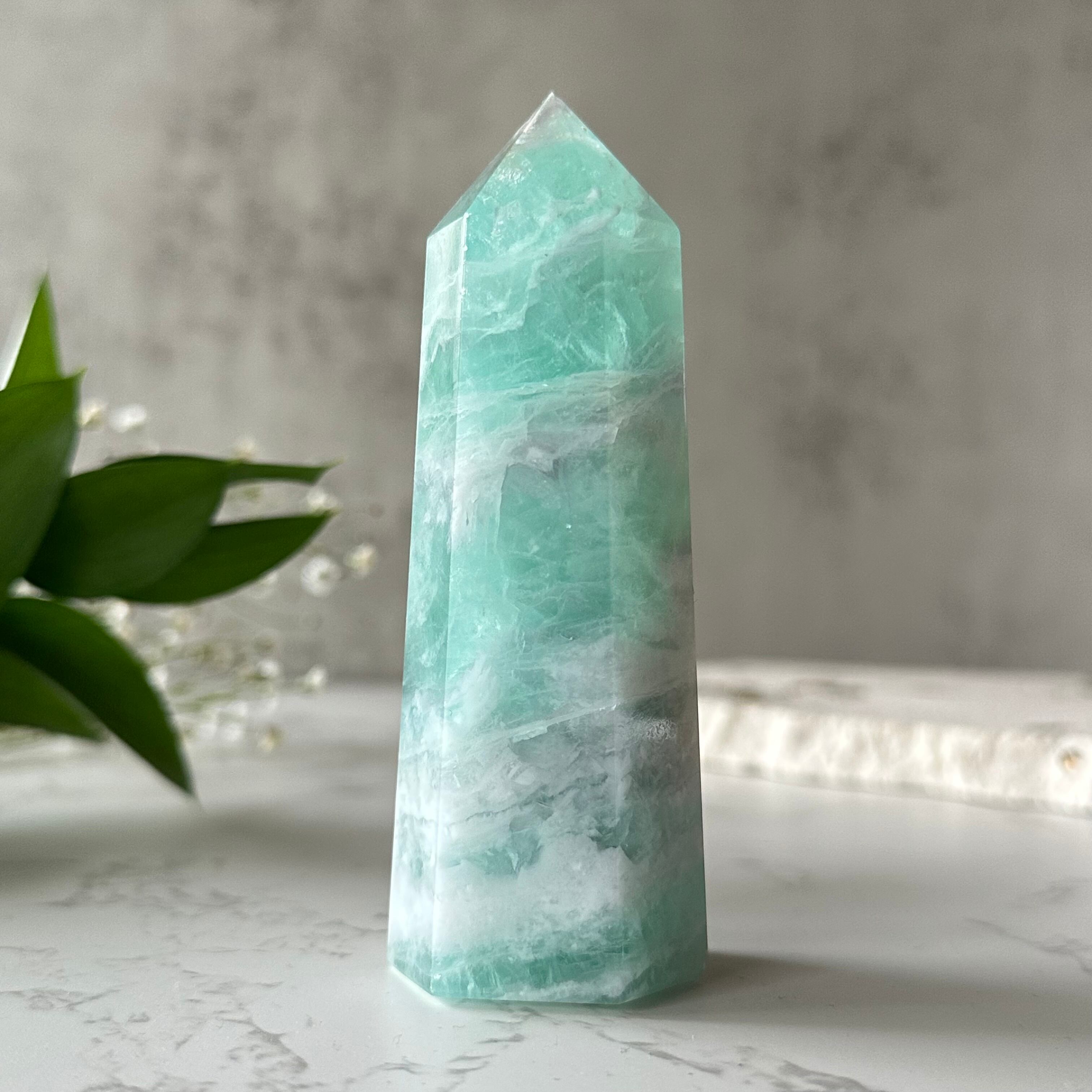 穏やかなエメラルドグリーンの上品なフローライトタワー。インテリアとしても存在感があり、居心地の良い空間を演出してくれます。