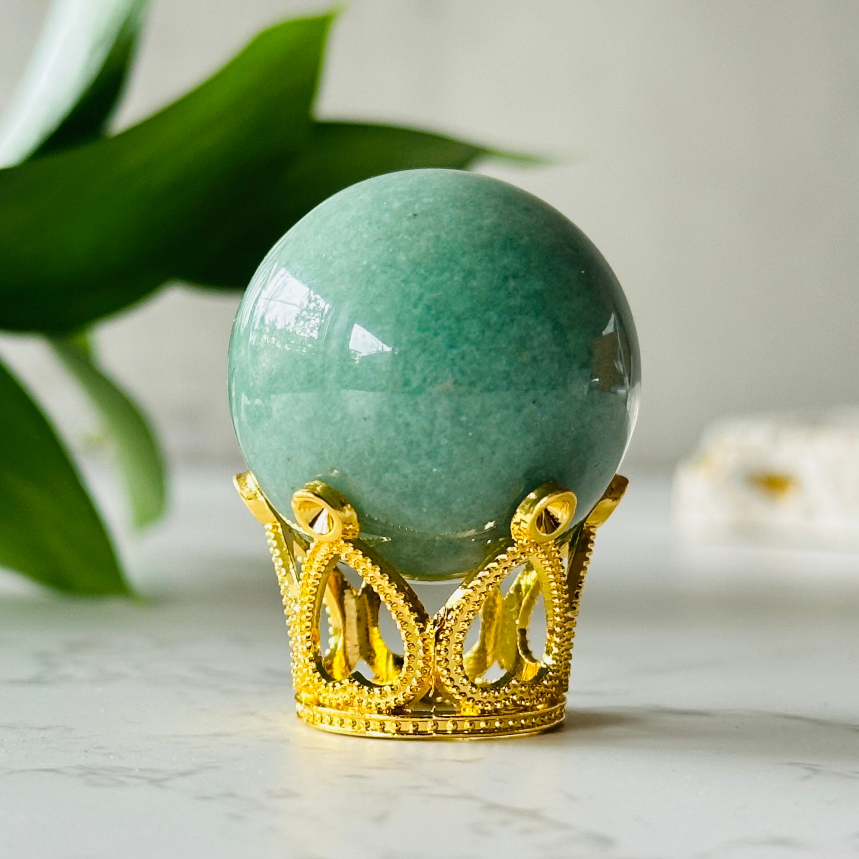 上品な優しい色合いのグリーンアベンチュリンスフィアです。