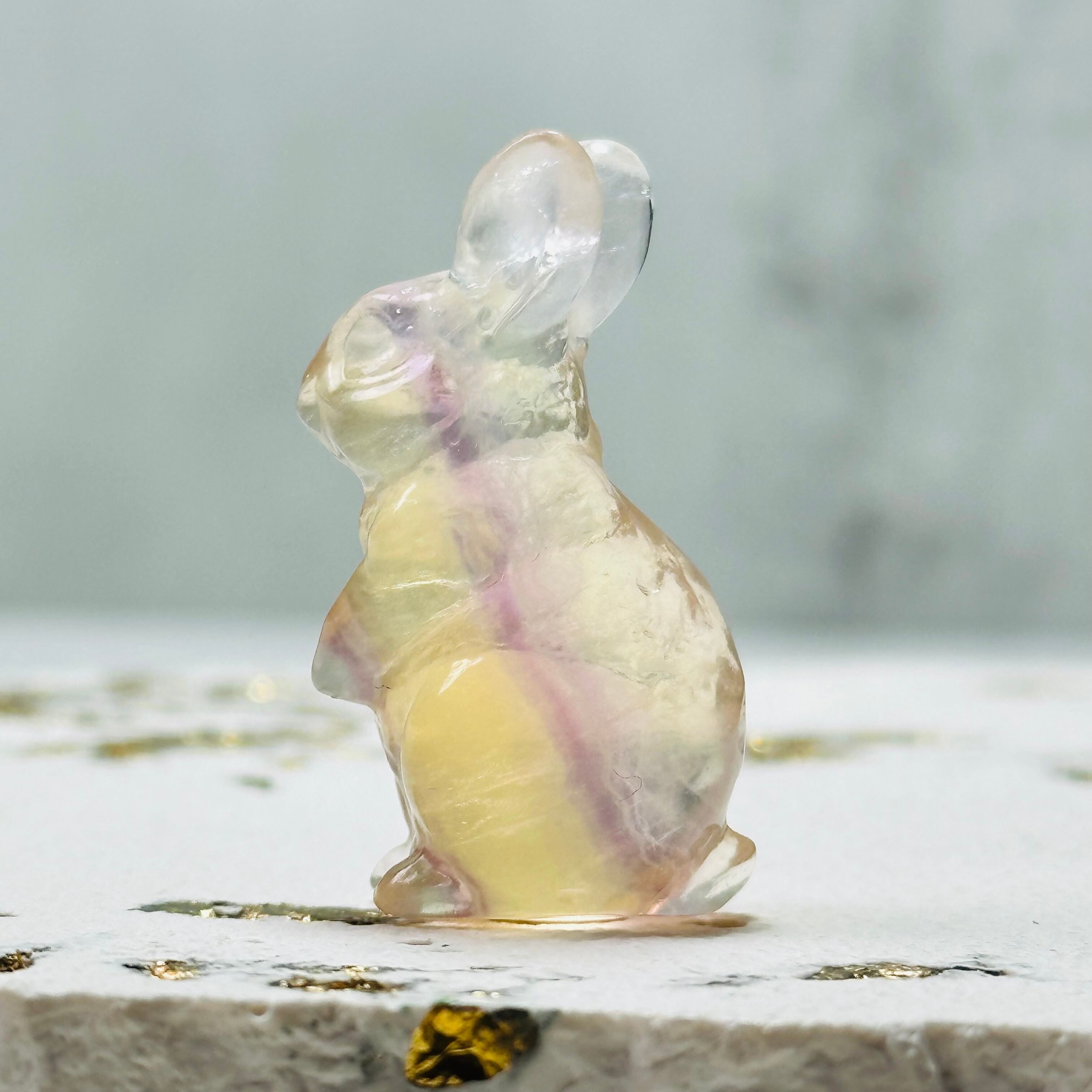 癒しの天然石|フローライトうさぎの彫刻オブジェ(1-21)
