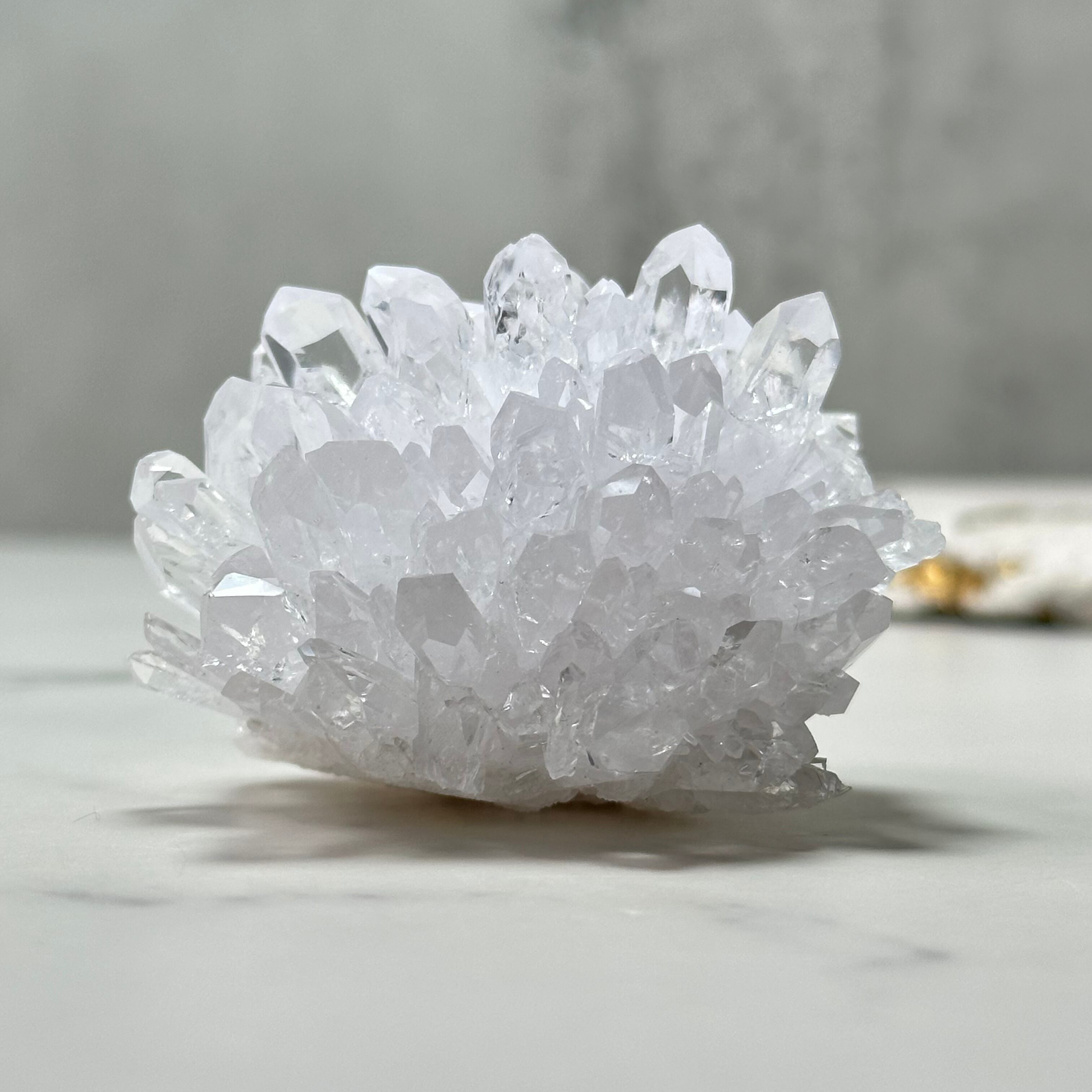 ふんわりまあるいお花が開いたような形が可愛いクリアクォーツクラスター。