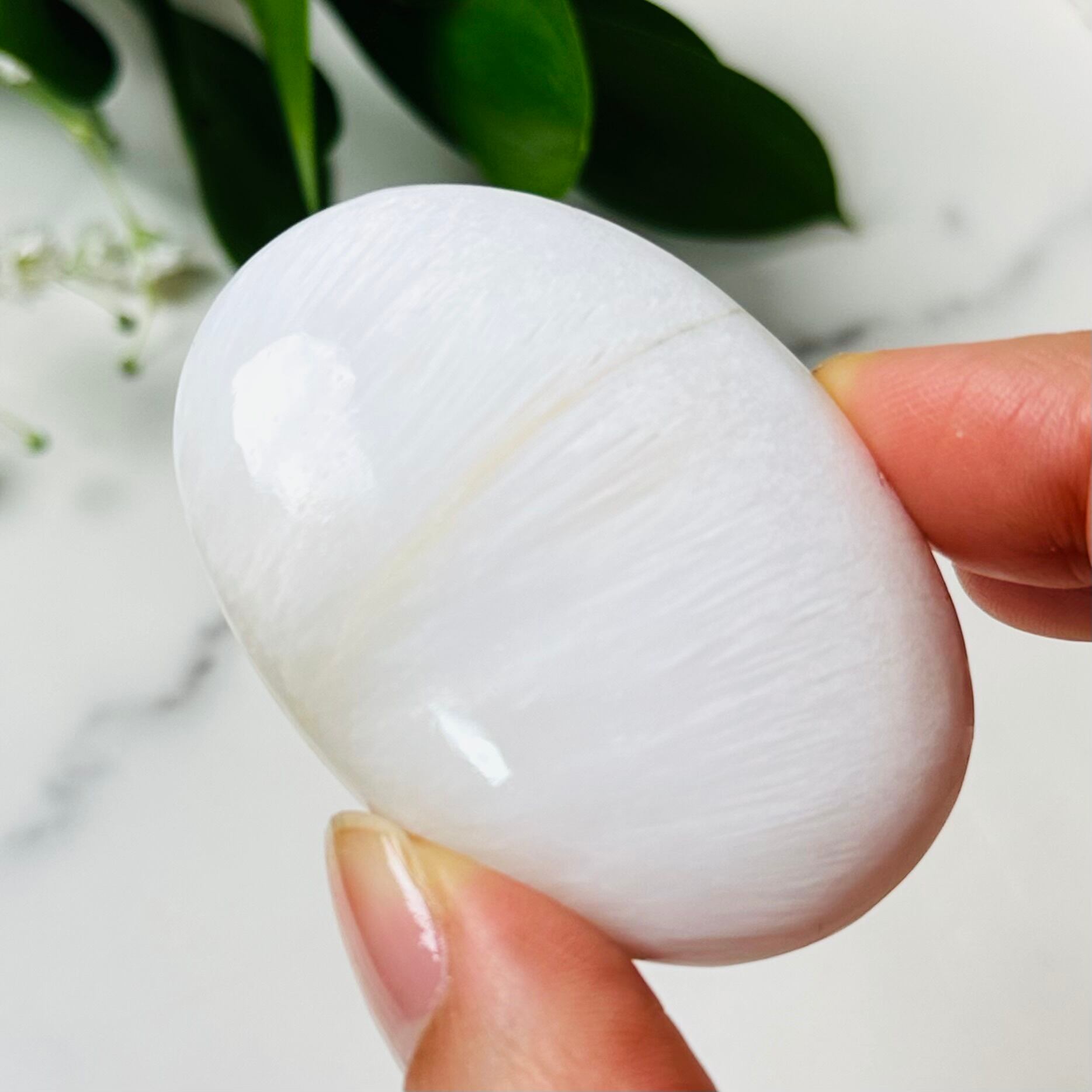 シルクのような上質な光沢を放ち、ふんわりとした優しさを感じさせるスコレサイトのパームストーン。乳白色の繊細な石が手のひらにすっと馴染み、静かな時間をもたらしてくれます。丸みを帯びた形状で、お部屋のインテリアやリラックスタイムのお供にぴったり。穏やかで心地よい空間づくりにおすすめの癒しアイテムです。