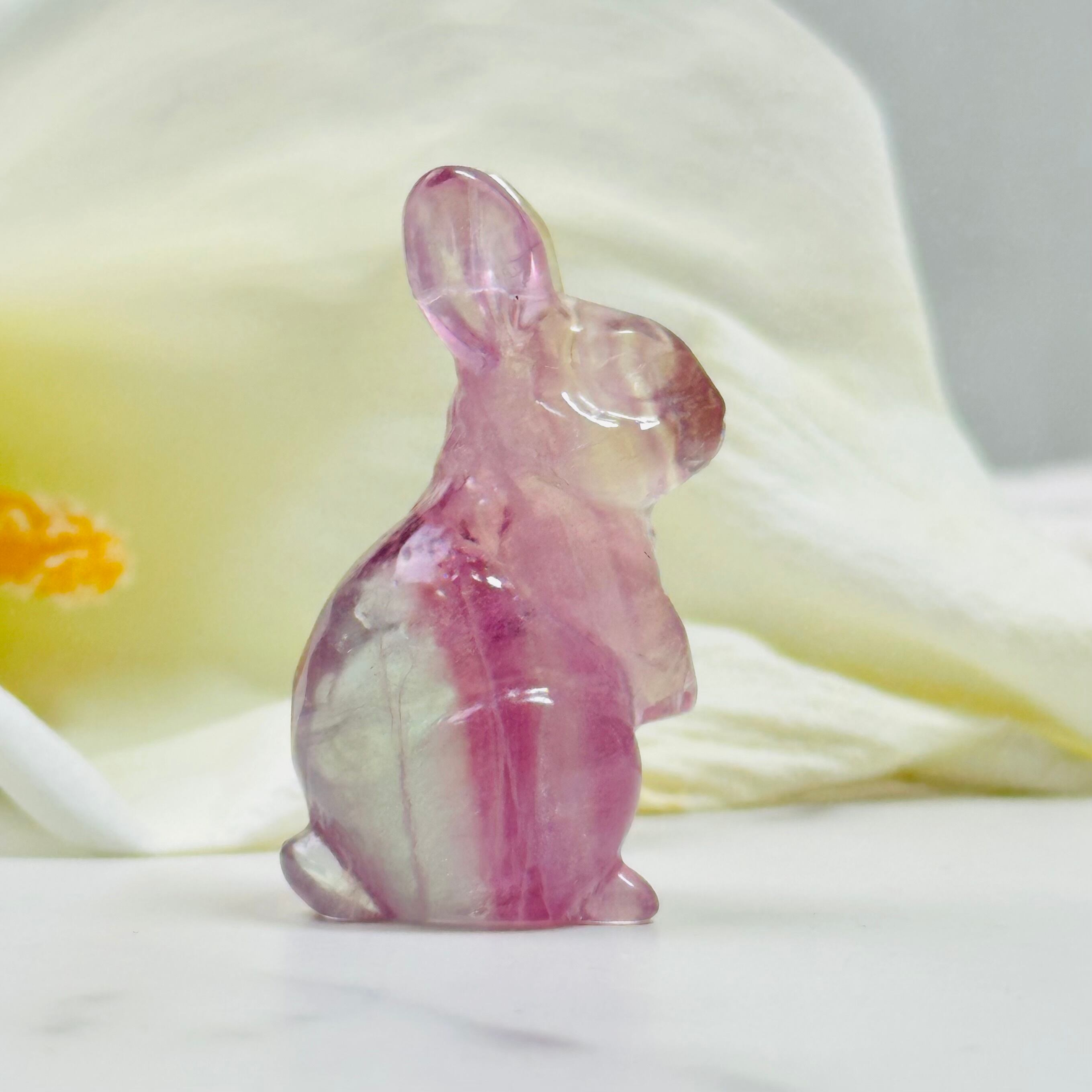癒しの天然石|フローライトうさぎの彫刻オブジェ(3-16)