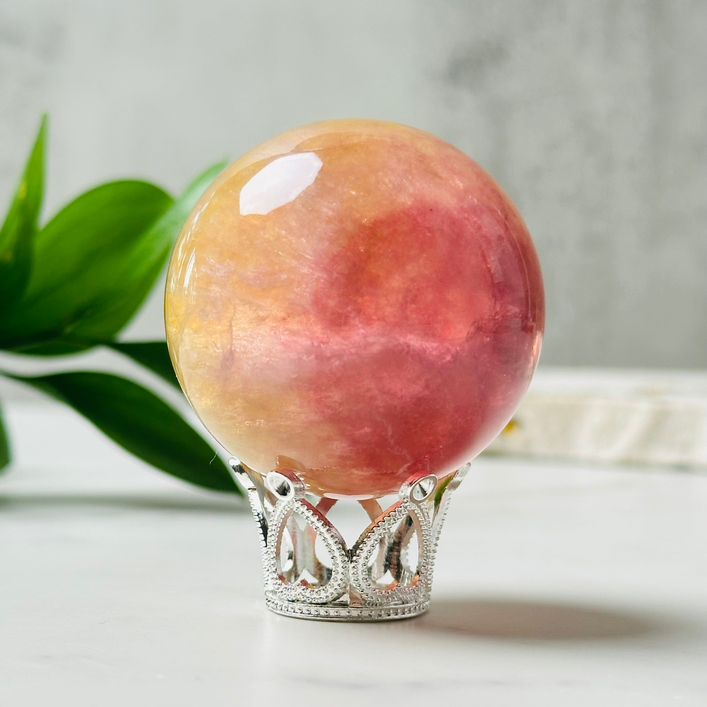 天然石インテリア|キャンディフローライトスフィアΦ45mm(オレンジピンク)
