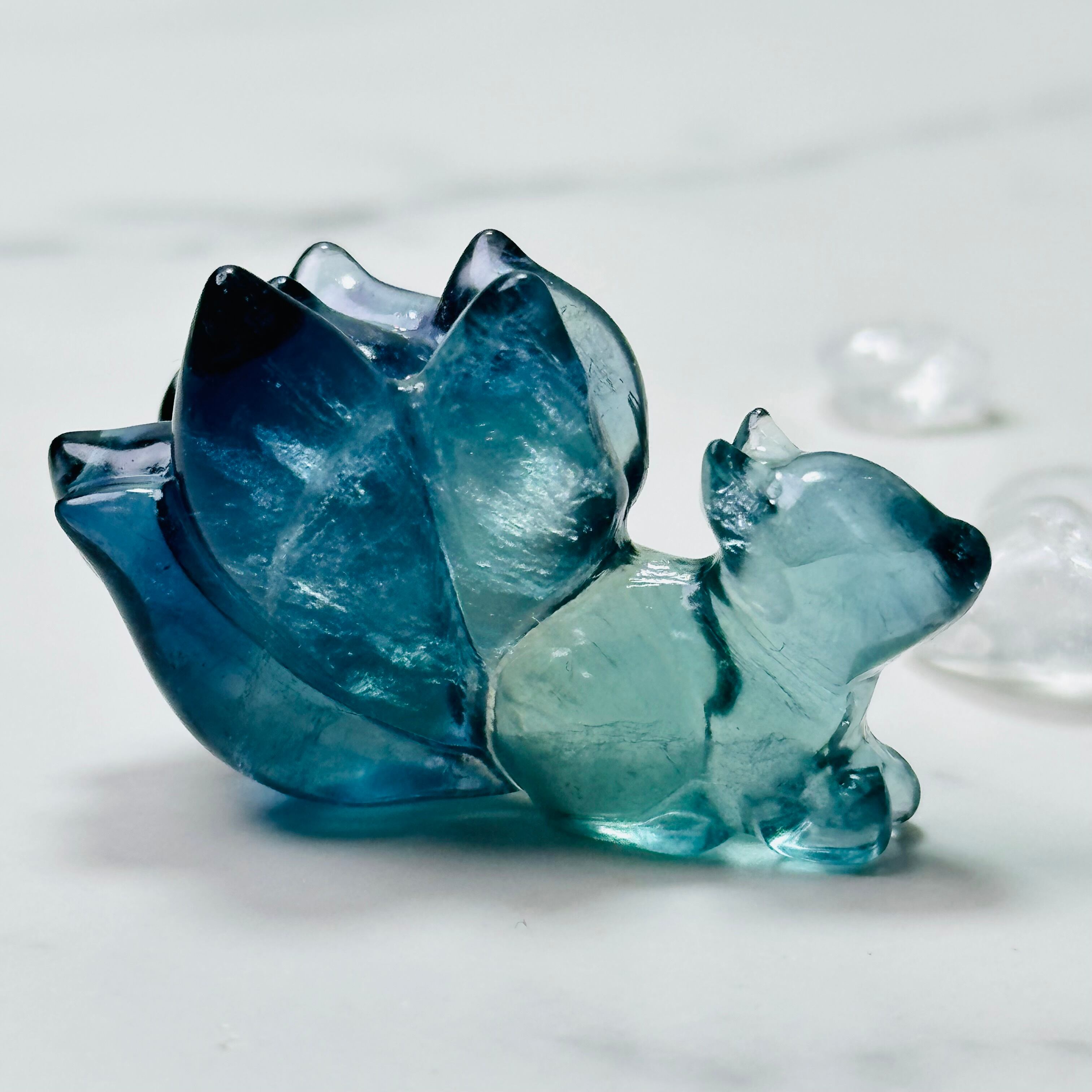 フローライト九尾の狐|幻想的な天然石カーヴィング