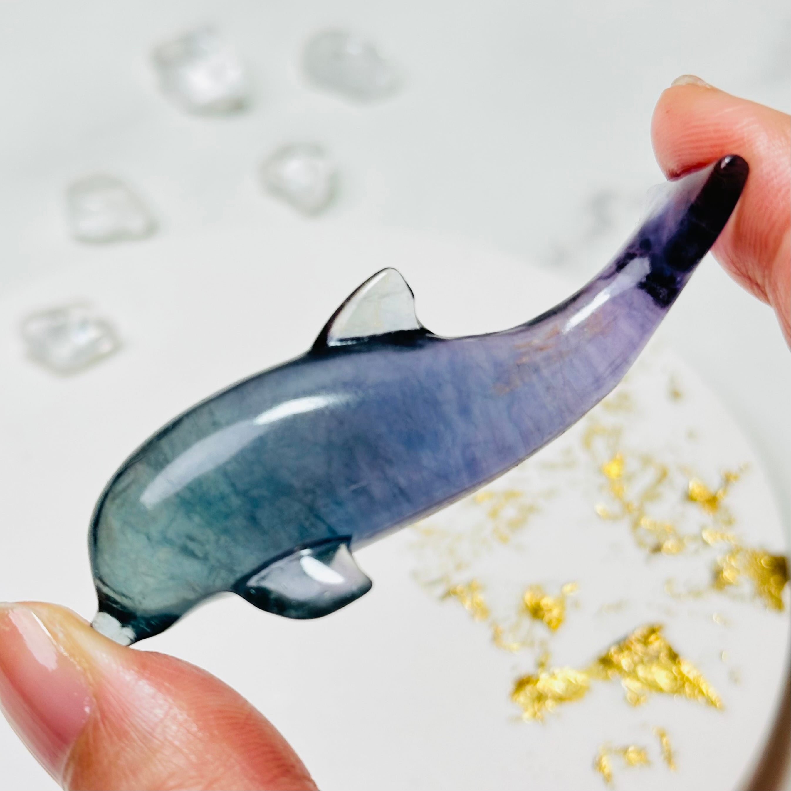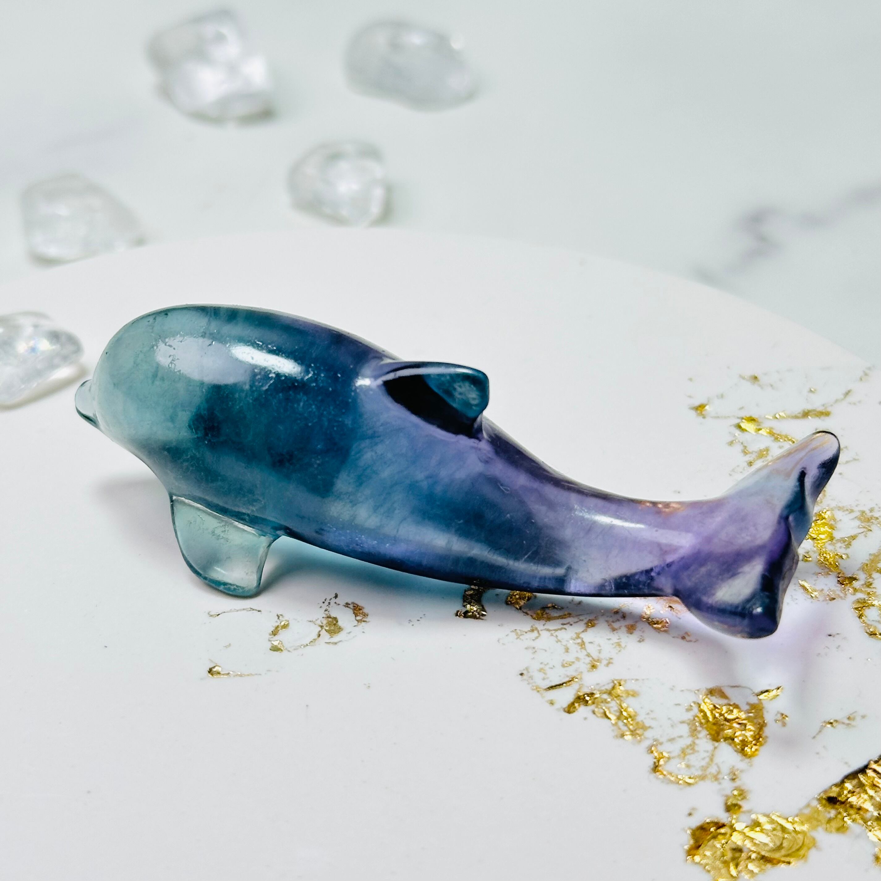 透明感きらめく天然石イルカ|癒しのフローライト彫刻インテリア 02