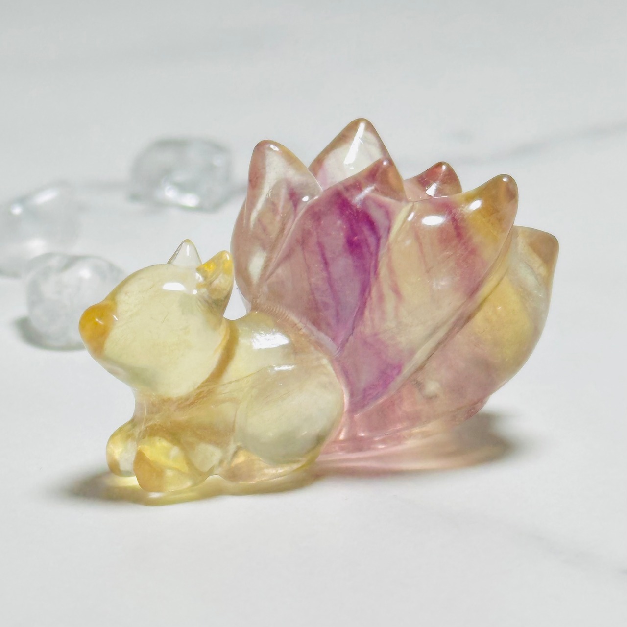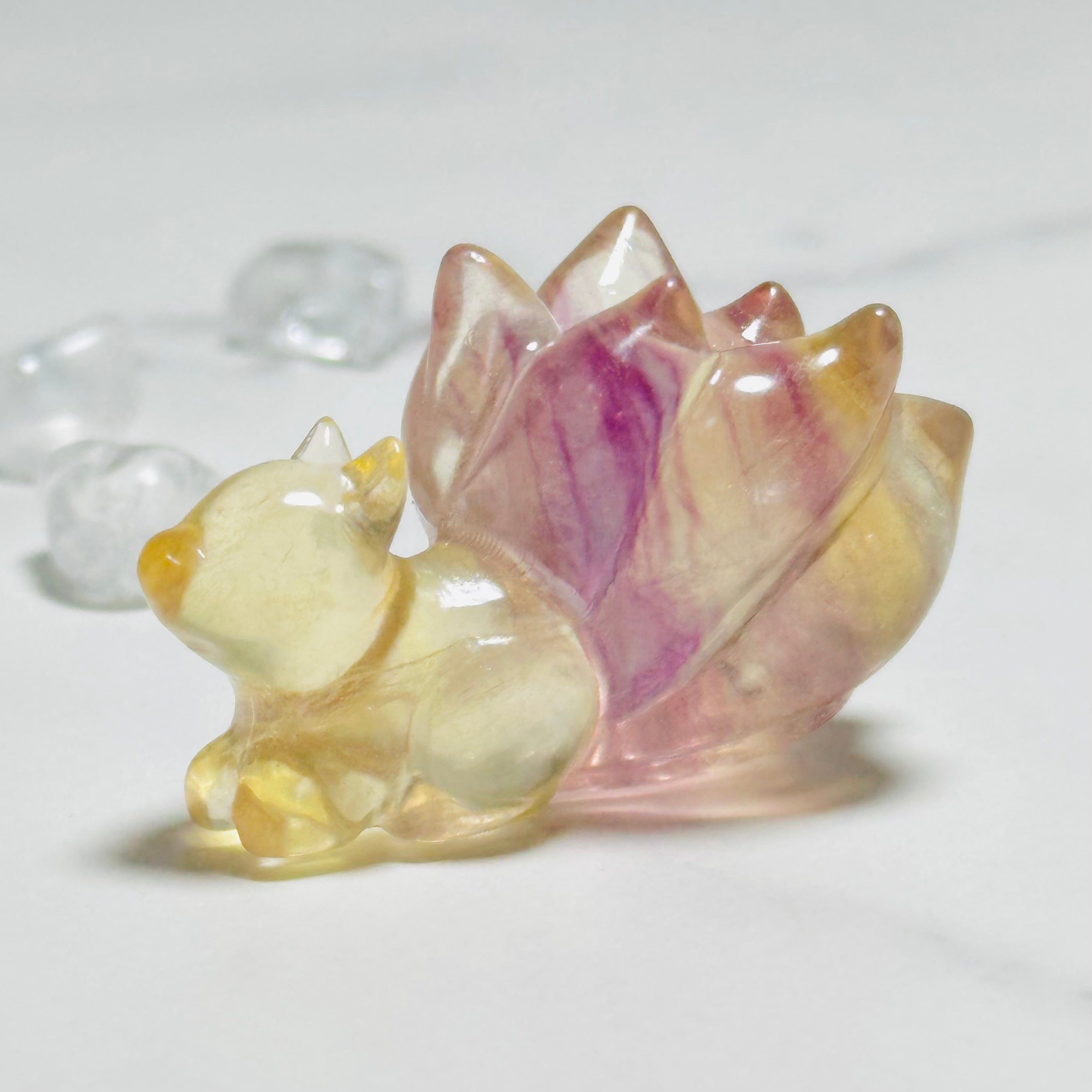フローライト九尾の狐|幻想的な天然石カーヴィング