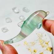 可愛らしいイルカのフォルムに、フローライト特有の透明感と輝きが美しく映える天然石カーヴィング。手のひらサイズの癒しインテリアとして、窓辺やデスク、ベッドサイドに飾れば、お部屋に優しい雰囲気を添えてくれます。天然石ならではの色合いや模様はすべて一点もの。お気に入りの子を見つけて、あなただけの癒し空間にしてください。
