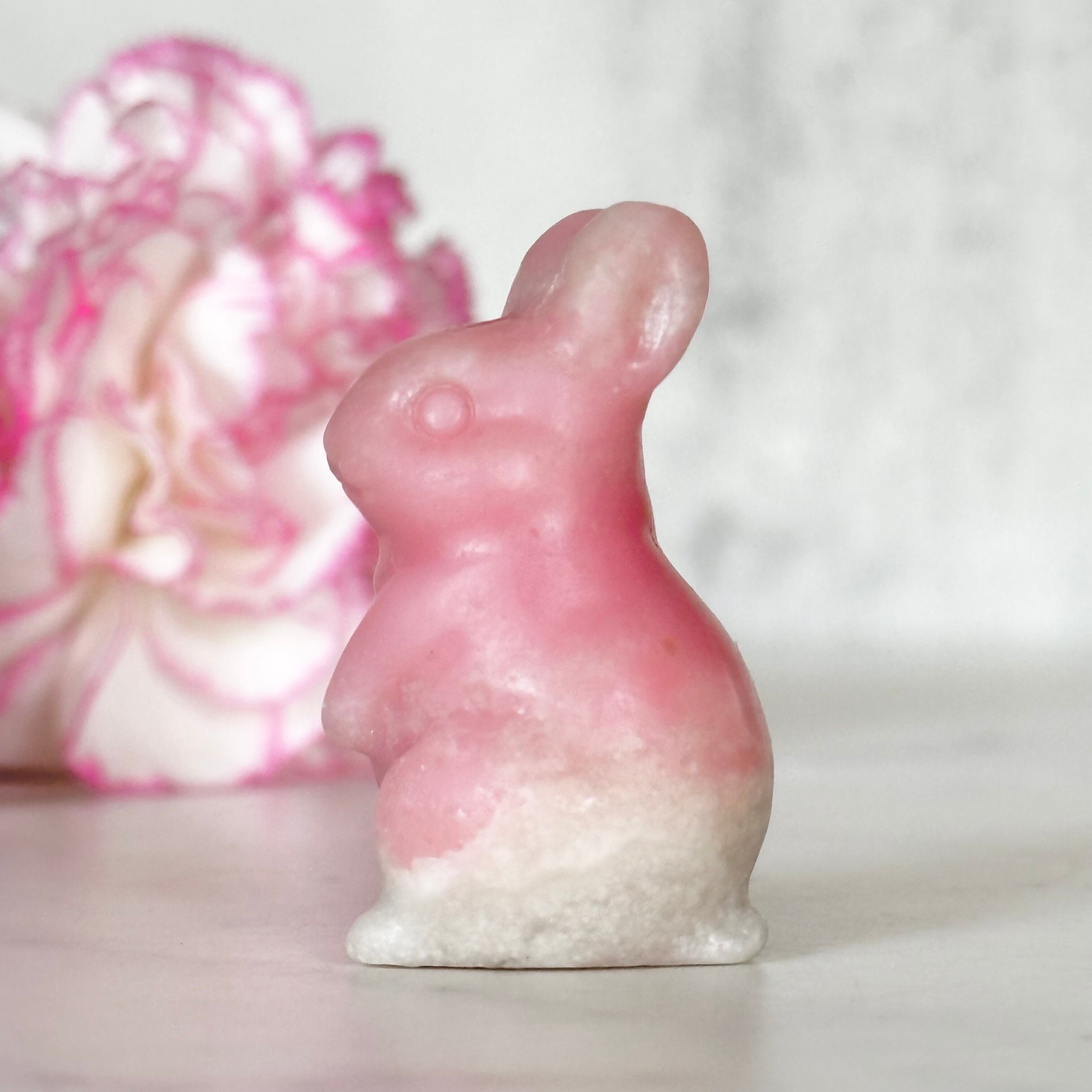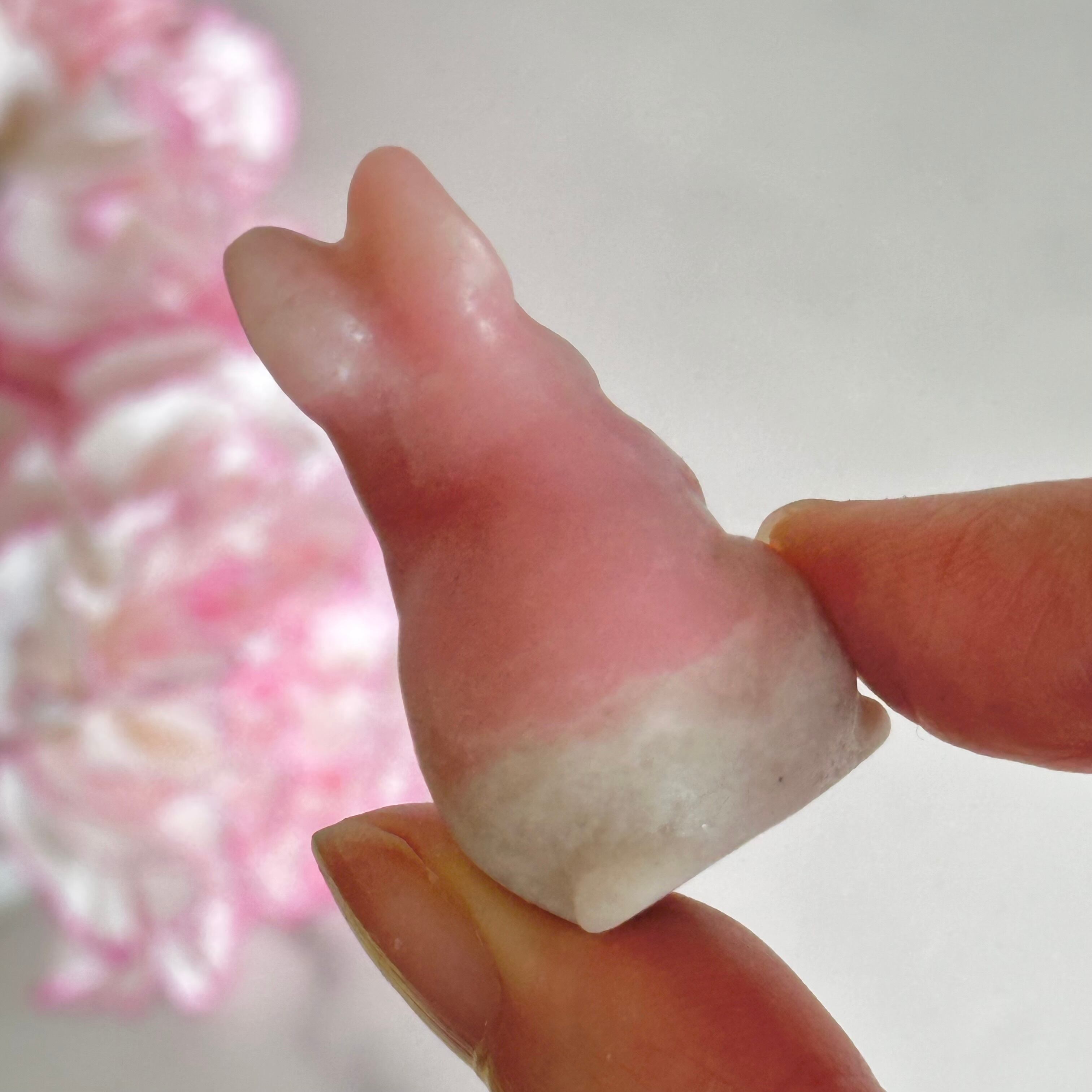 癒しの天然石インテリア|優しい色合いのピンクオパールうさぎカーヴィング