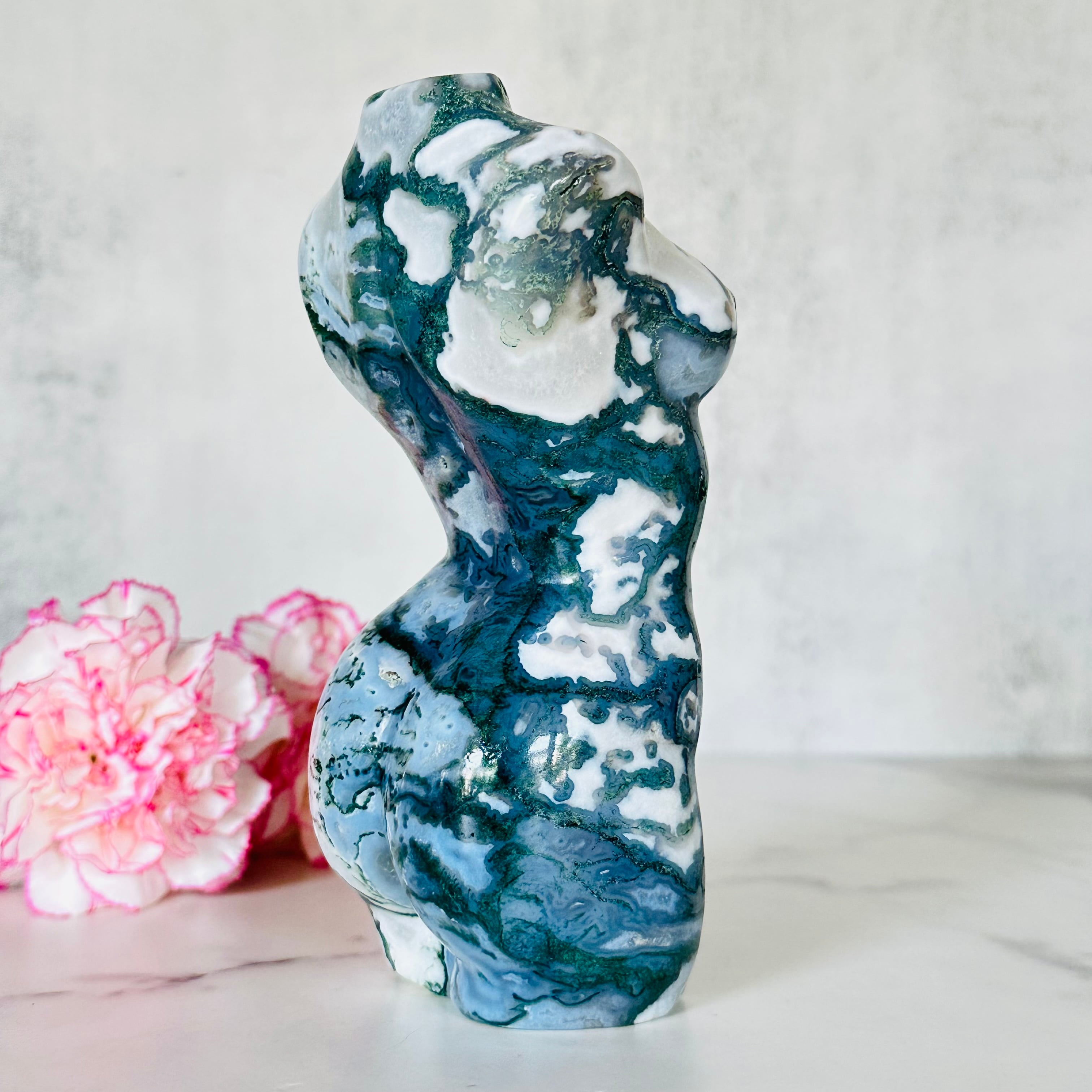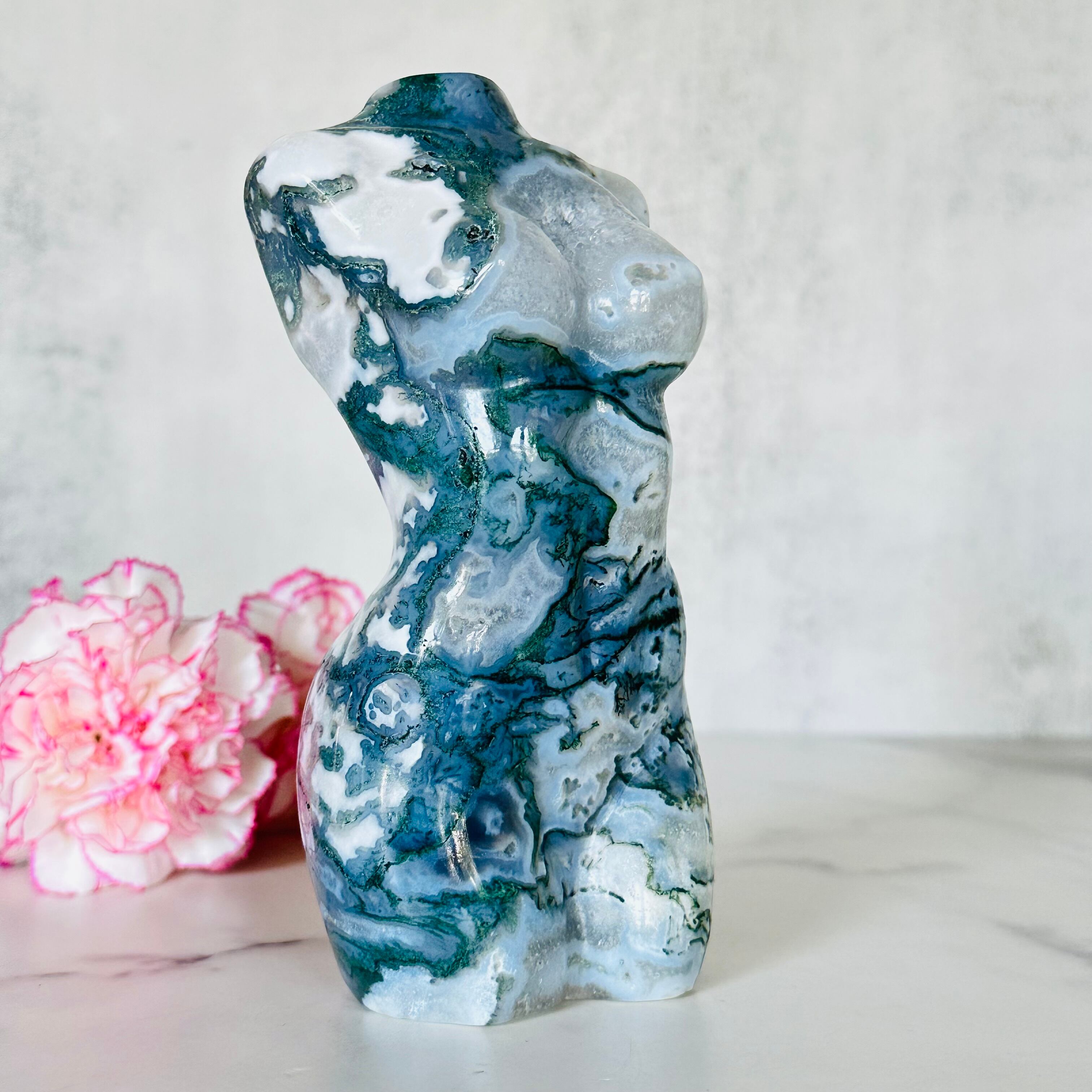 森林浴の癒しをお部屋に|自然美あふれるモスアゲート女性像オブジェ