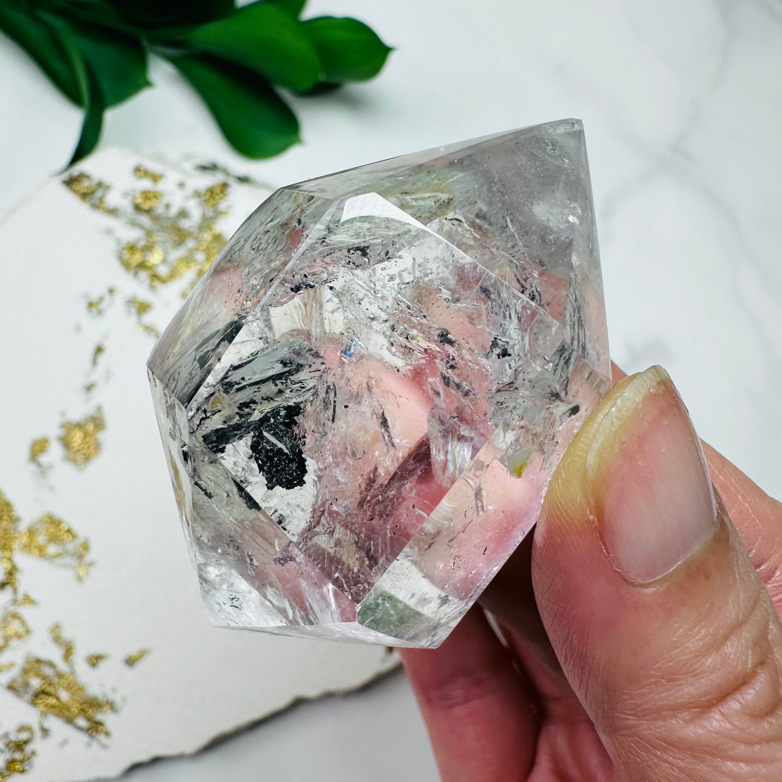 透明な水晶の中に、黒く舞う流砂と神秘的な水が閉じ込められた「水入り水晶」。自然が長い年月をかけて作り出した唯一無二のアートピースです。流れる黒い砂が幻想的な表情を見せるたび、心がスッと静まるような癒しを与えてくれます。このスペシャルな石とともに、あなただけの特別な時間をお過ごしください。