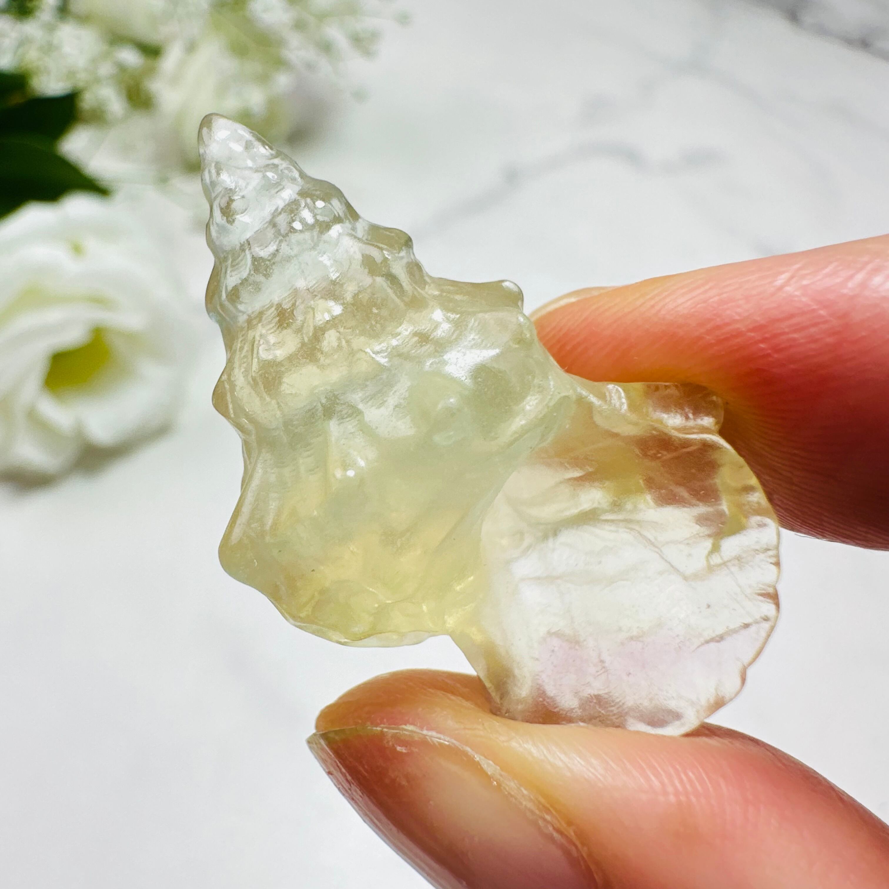 宝石のようなフローライトの巻貝カーヴィング。透き通った質感と美しい色合いが魅力です。貝殻の形が海辺を思わせる、夏のインテリアにぴったりの天然石アイテムです。シェルや流木と組み合わせて飾れば、リゾート感あふれる癒しの空間が完成。窓辺や玄関に飾るだけで、季節を感じるナチュラルなインテリアが完成です。