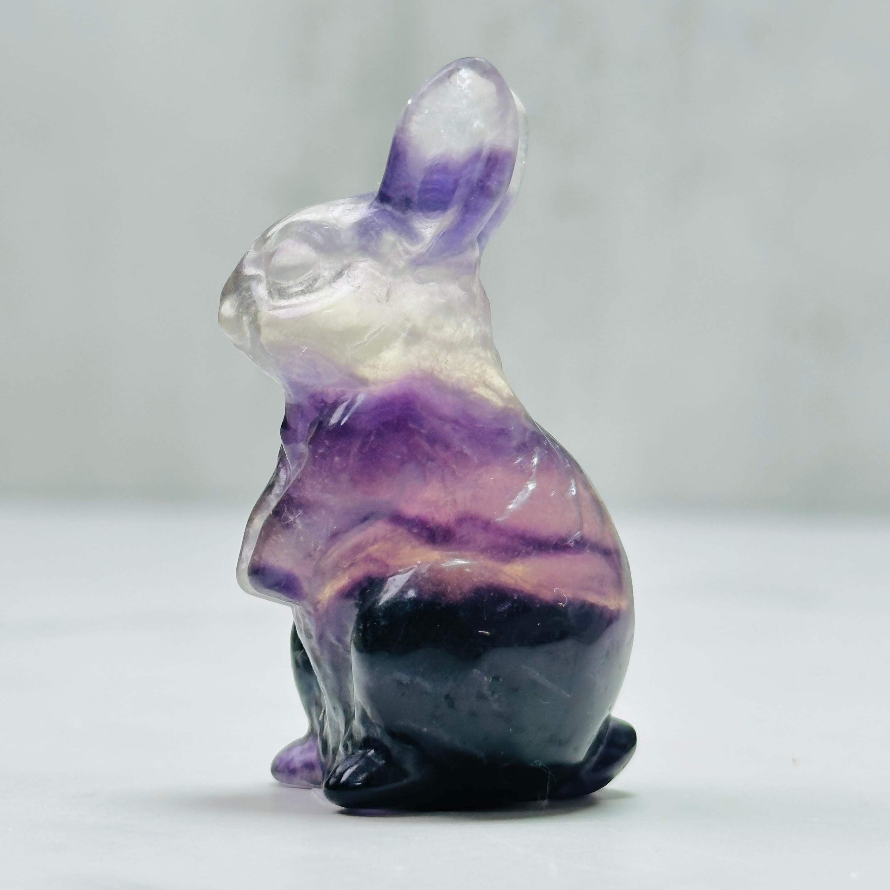 聡明な表情とピンと立ったお耳が可愛らしいフローライトのうさぎです。透明感のある紫色は光の加減で表情を変え、見る人の心をほっと癒してくれます。うさぎの可愛らしいフォルムが天然石の美しさを引き立て、玄関やデスク、ベッドサイドにそっと置くだけで優しい空間に。ナチュラルで大人可愛いインテリア雑貨として、ギフトにもおすすめの一点です。