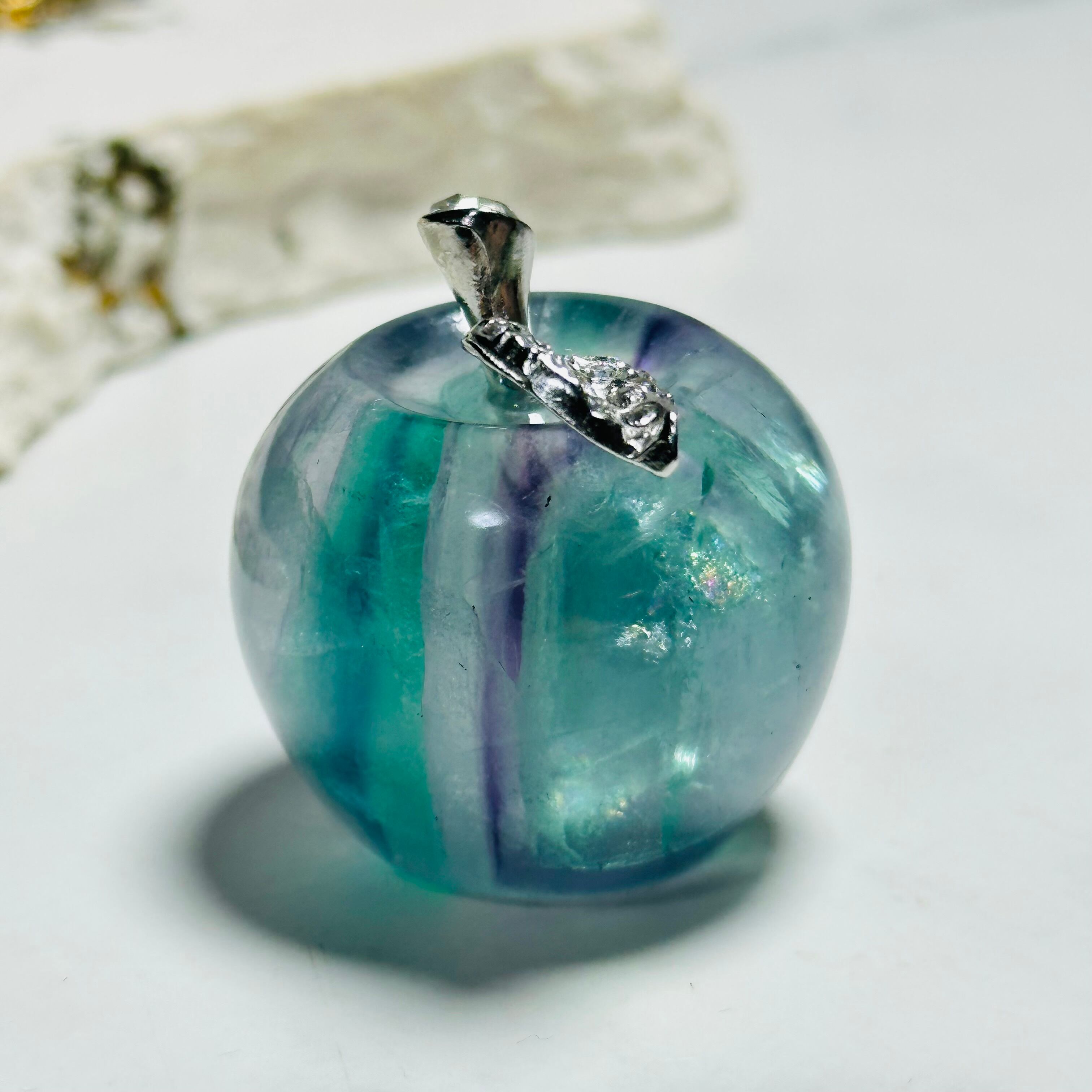 ころんとしたフォルムが愛らしい天然石フローライトのりんご。美しい色合いで光の当たり方や角度によって表情が変わります。お部屋のお気に入りスペースに飾ったり、ペーパーウエイトとしてお使いください。大切な方へのギフトにもぴったりです。ナチュラルで上品な雰囲気が、大人の可愛らしさを引き立てます。