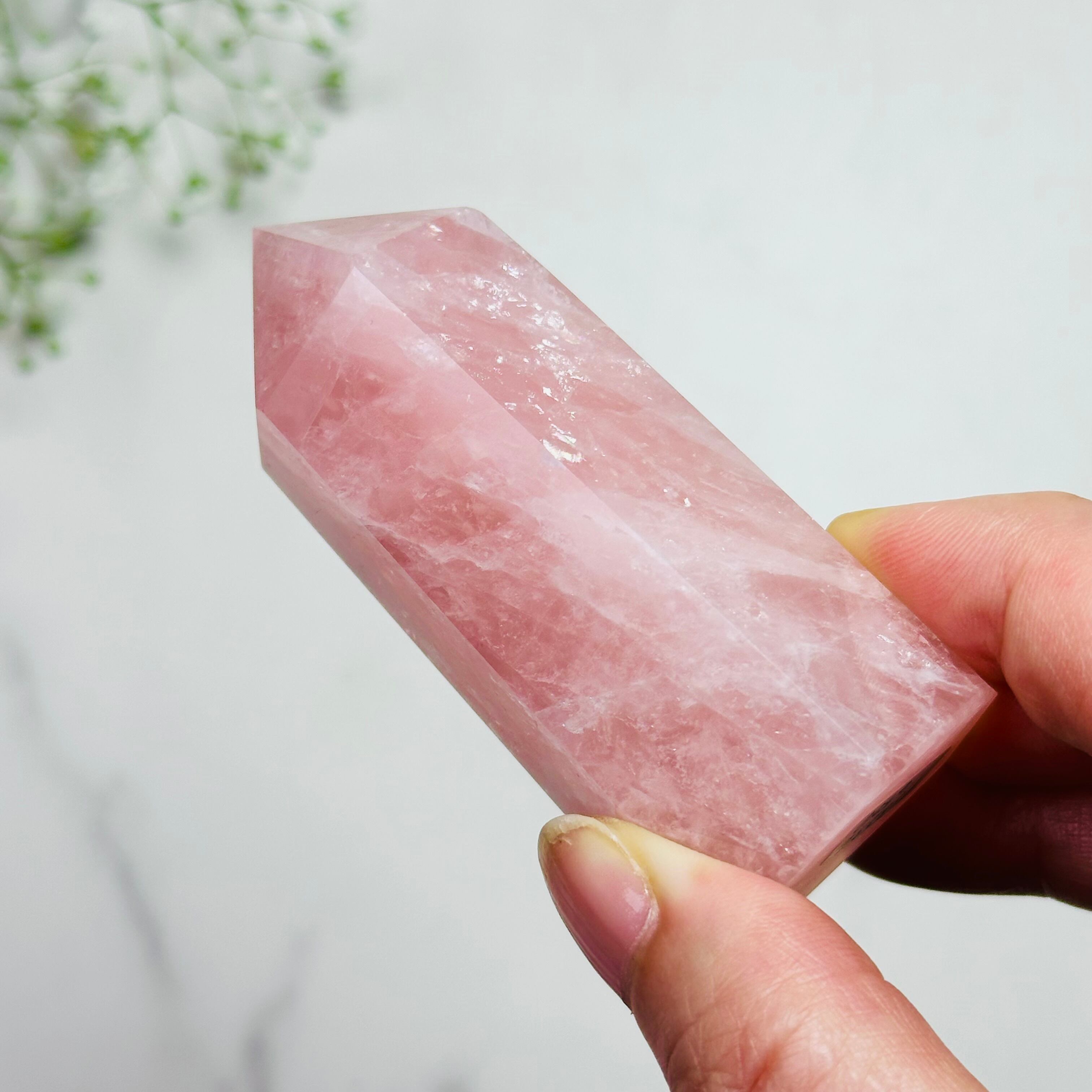 ピンクの色合いが優しく輝く、大人可愛いローズクォーツのタワー。傾けると無数のキラキラした煌めきが見られます。インテリアにすっとなじむシンプルなフォルムで、お部屋をやわらかな雰囲気に包み込んでくれます。玄関やデスク、ベッドサイドに置けば、空間にそっと癒しをプラス。自分へのご褒美はもちろん、大切な方へのギフトにもぴったりなアイテムです。