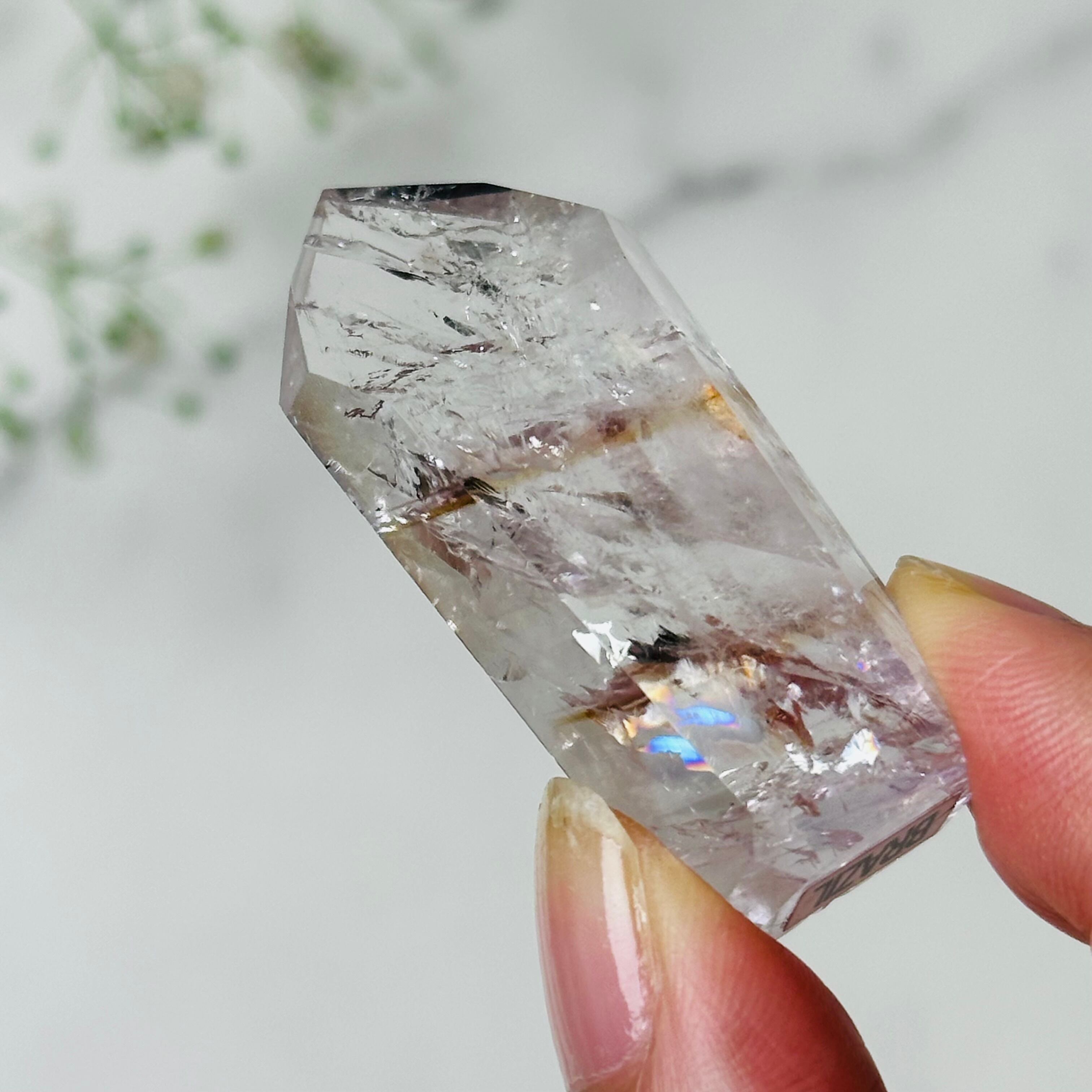 水晶やアメジストなどの結晶内部に現れる、山の稜線や層のような模様のことです。これは結晶が成長を一時的に止め、再び育ち始めるという自然のサイクルによって生まれます。透明な結晶の中に、過去の結晶の形が淡く浮かび上がり、まるで幻影(ファントム)のように見えることからその名が付けられました。ひとつとして同じ模様はなく、石の中に地球の時間が刻まれたような神秘的な美しさが魅力です。インテリアとしても、天然石コレクションの中でも、特別感を添えてくれる存在です。