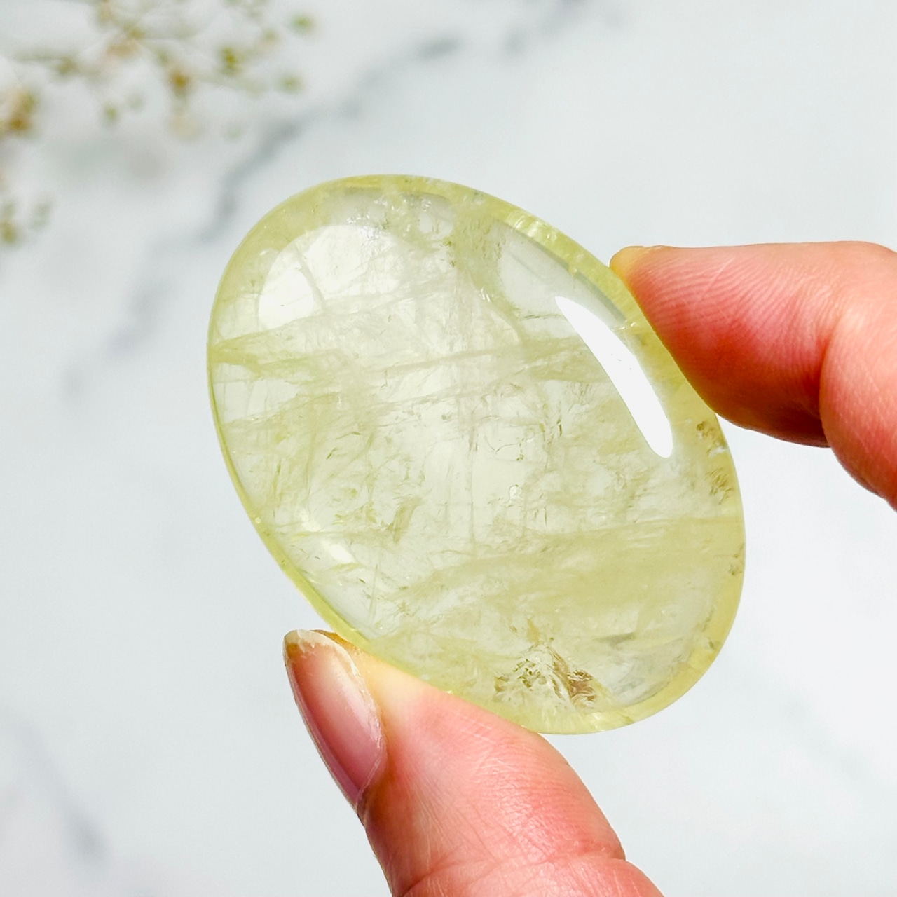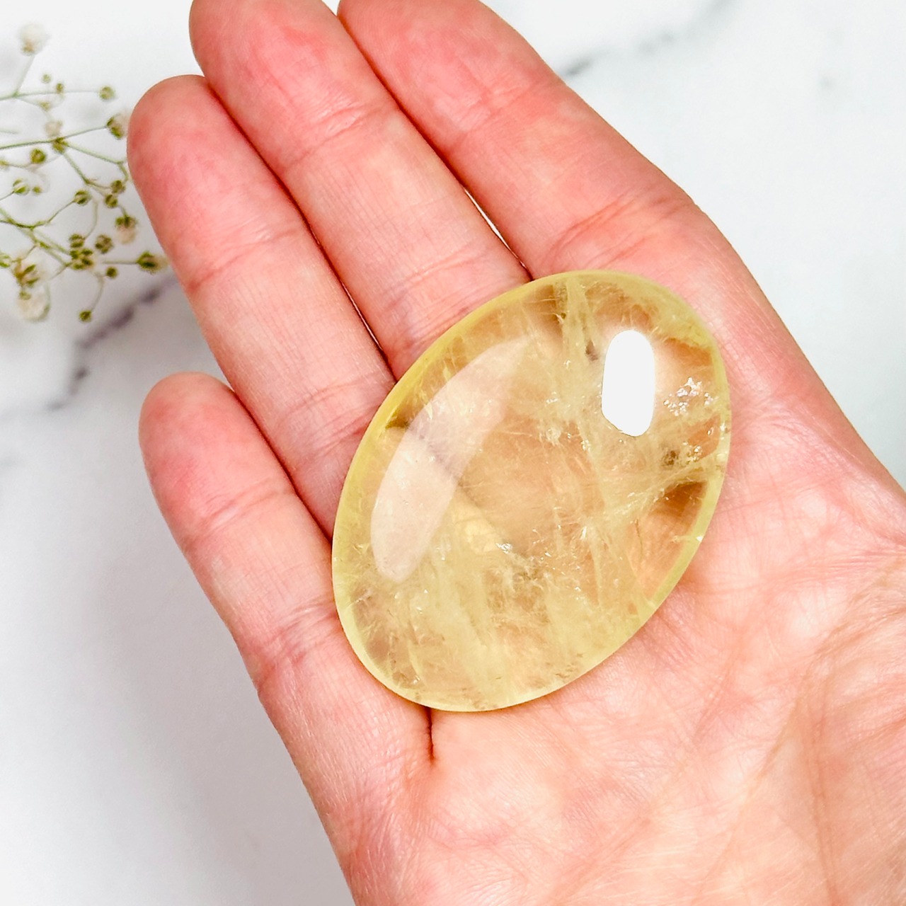 天然石インテリア|虹入りシトリン パームストーン 幸運と癒しのお守り