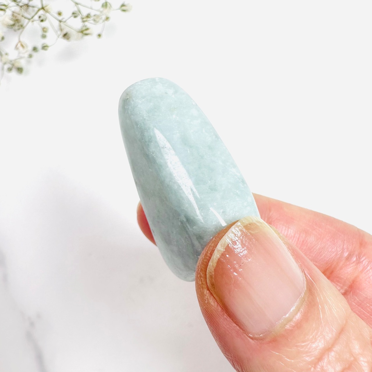 淡いグリーンが爽やかなミャンマー産ジェイドタンブルです。