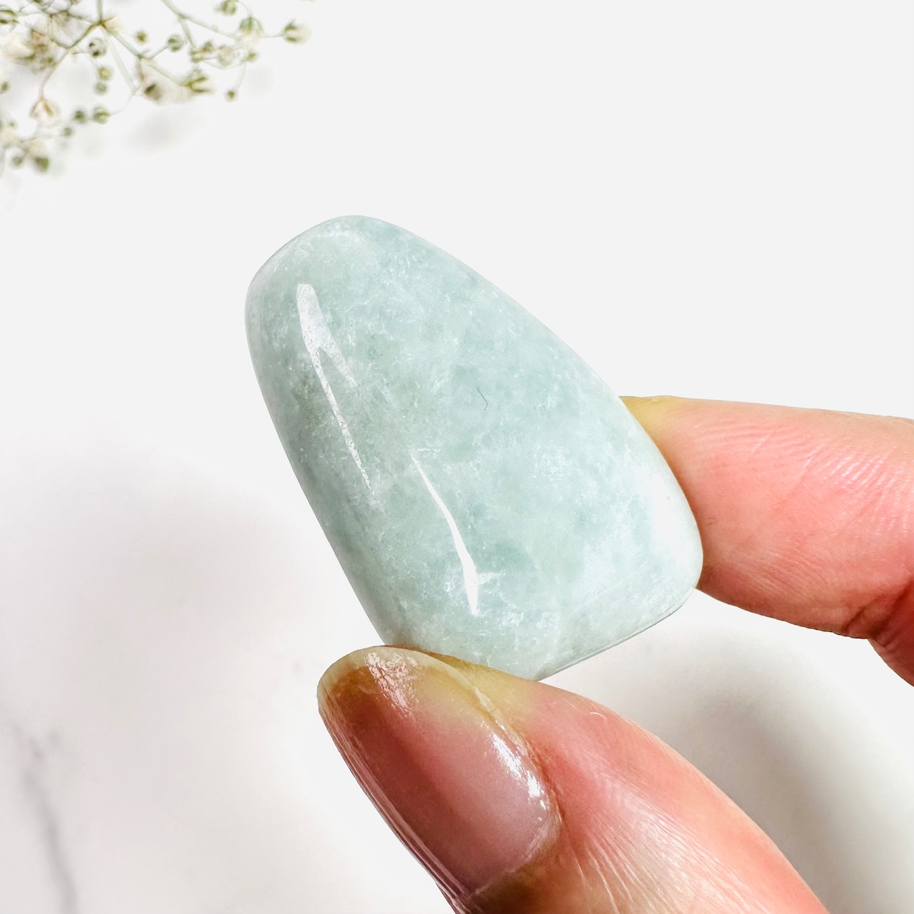 淡いグリーンが爽やかなミャンマー産ジェイドタンブルです。