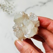 キラキラ光るアポフィライトに淡いピンク色スティルバイトが共生しています。柔らかな雰囲気のクラスターがピンクのフリルを纏ったような姿が可愛らしくて癒されます。お部屋のインテリアとしてはもちろん、リビングや寝室に飾れば毎日の暮らしに清らかなエネルギーを添えてくれるでしょう。