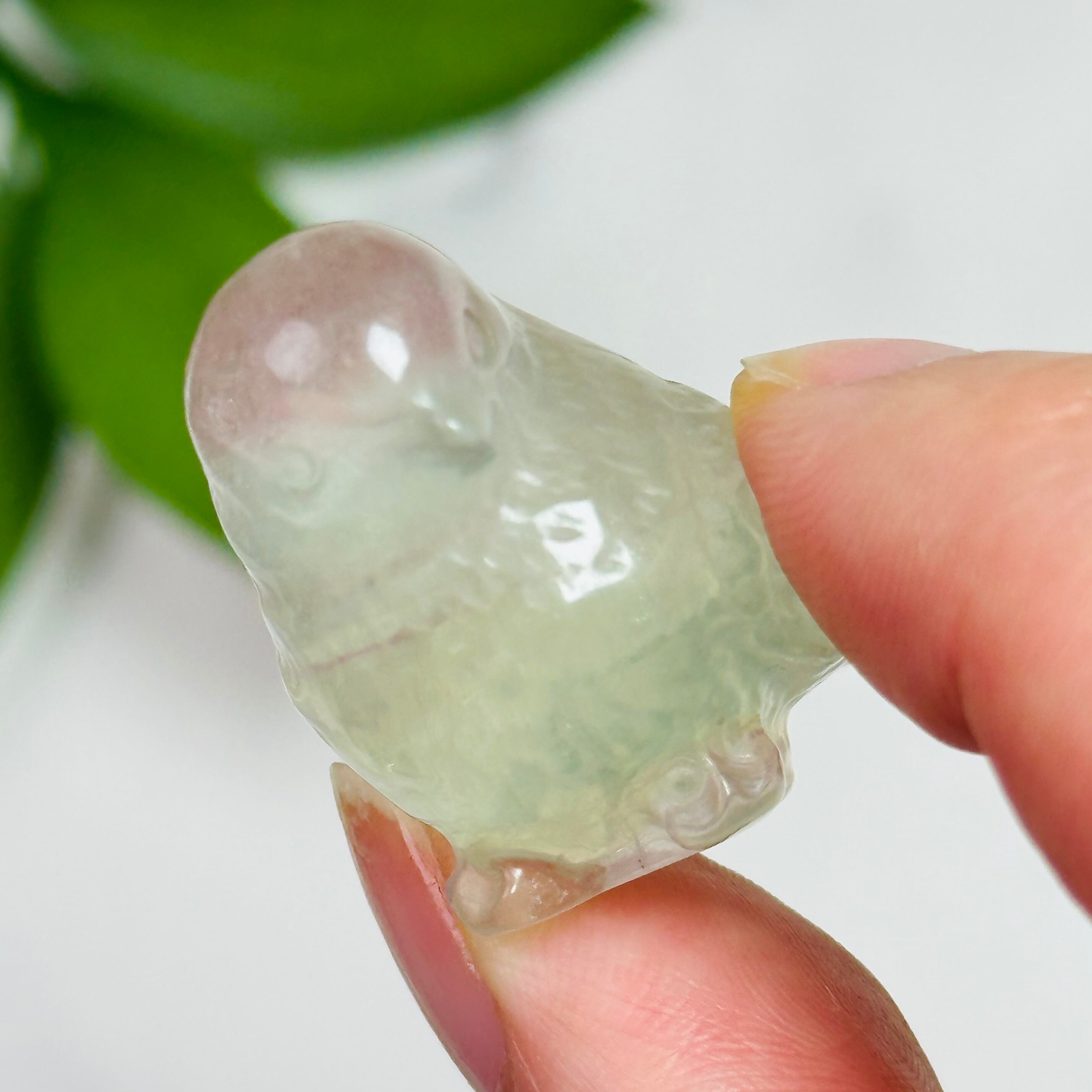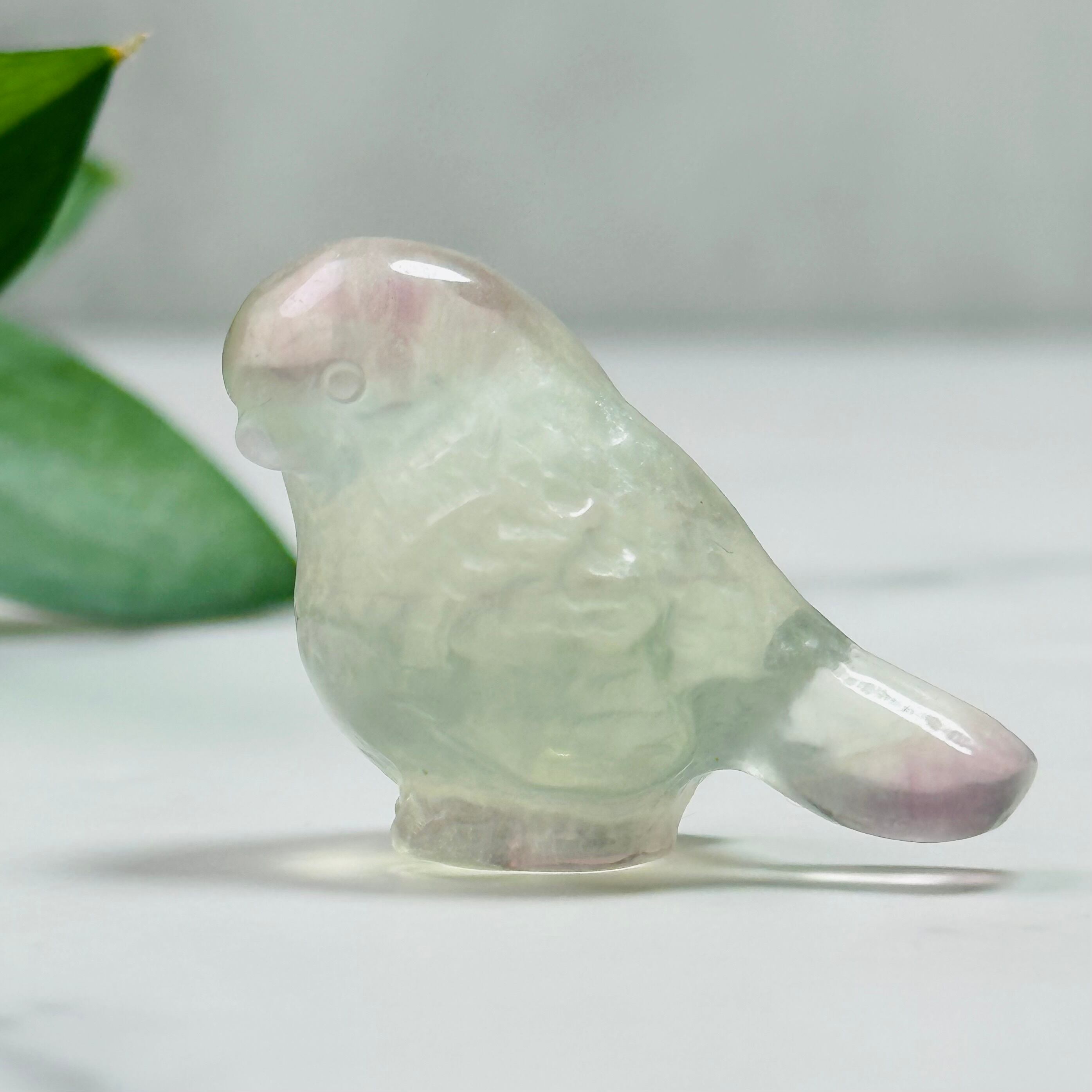 透明感あるフローライトの小鳥型カーヴィング。優しい色合いとフローライトの透き通った質感が綺麗です。手のひらにちょこんと乗る可愛らしいサイズ感で、お部屋にナチュラルな癒しを添えてくれます。窓辺やデスクに癒しの存在をお届けします。