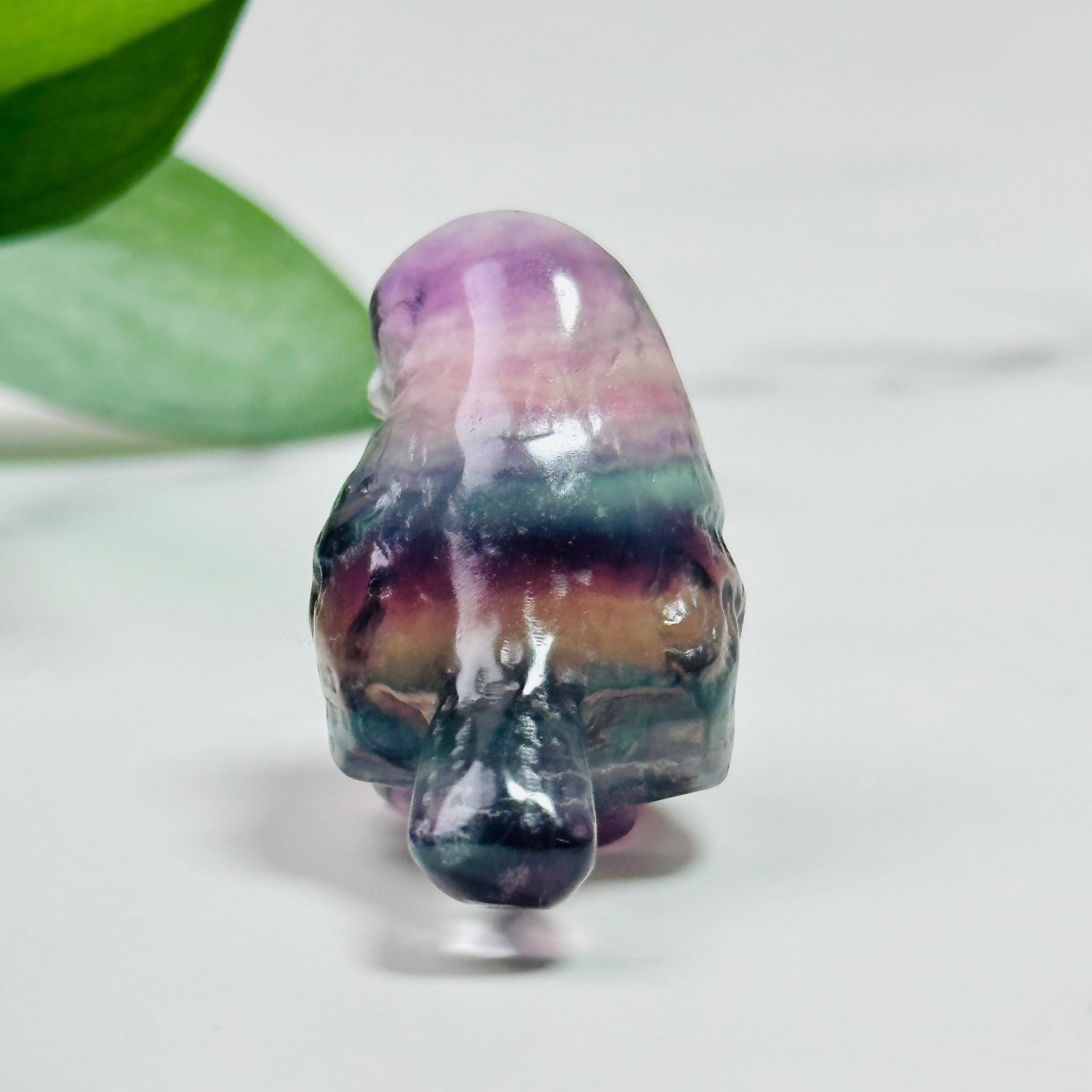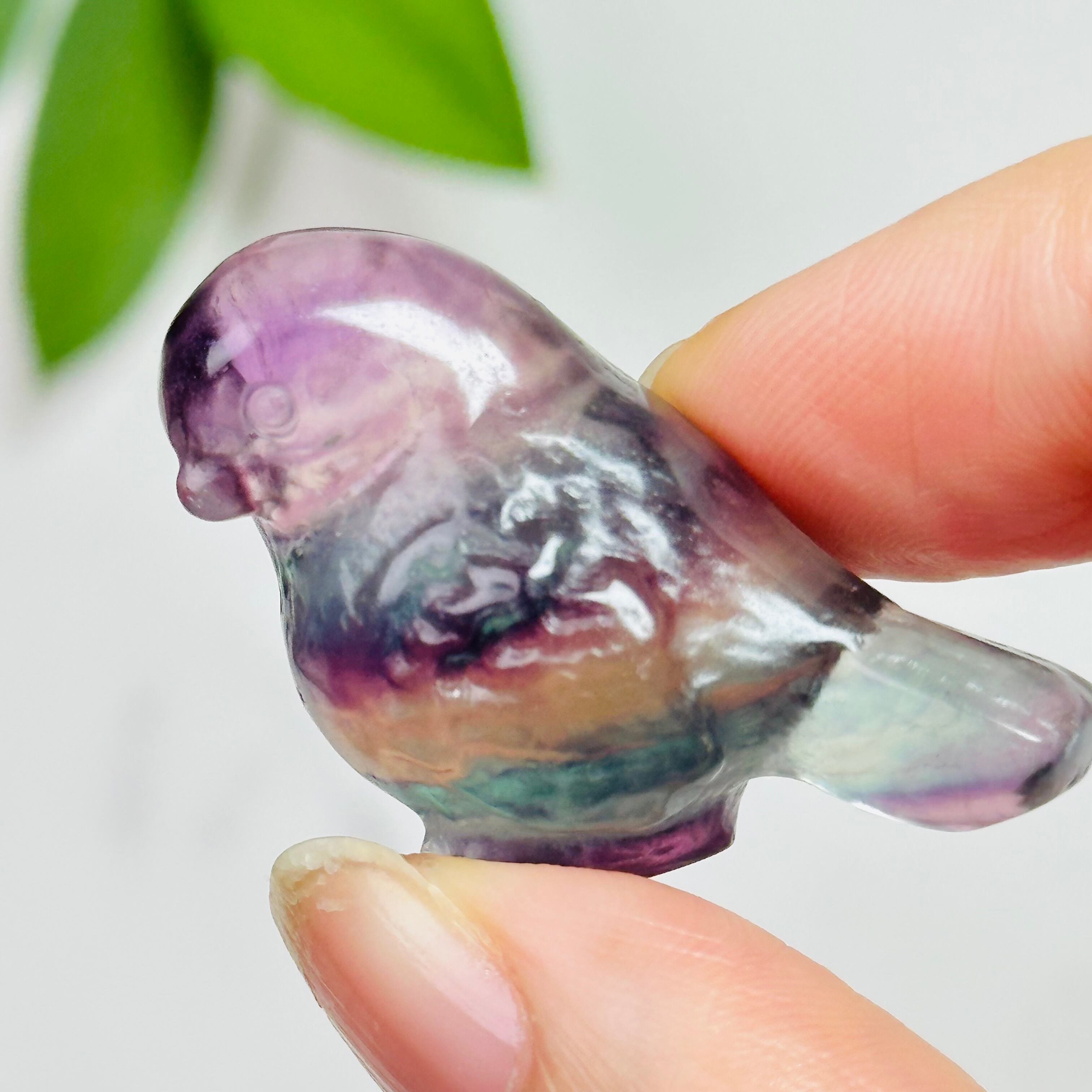 透明感あるフローライトの小鳥型カーヴィング。優しい色合いとフローライトの透き通った質感が綺麗です。手のひらにちょこんと乗る可愛らしいサイズ感で、お部屋にナチュラルな癒しを添えてくれます。窓辺やデスクに癒しの存在をお届けします。