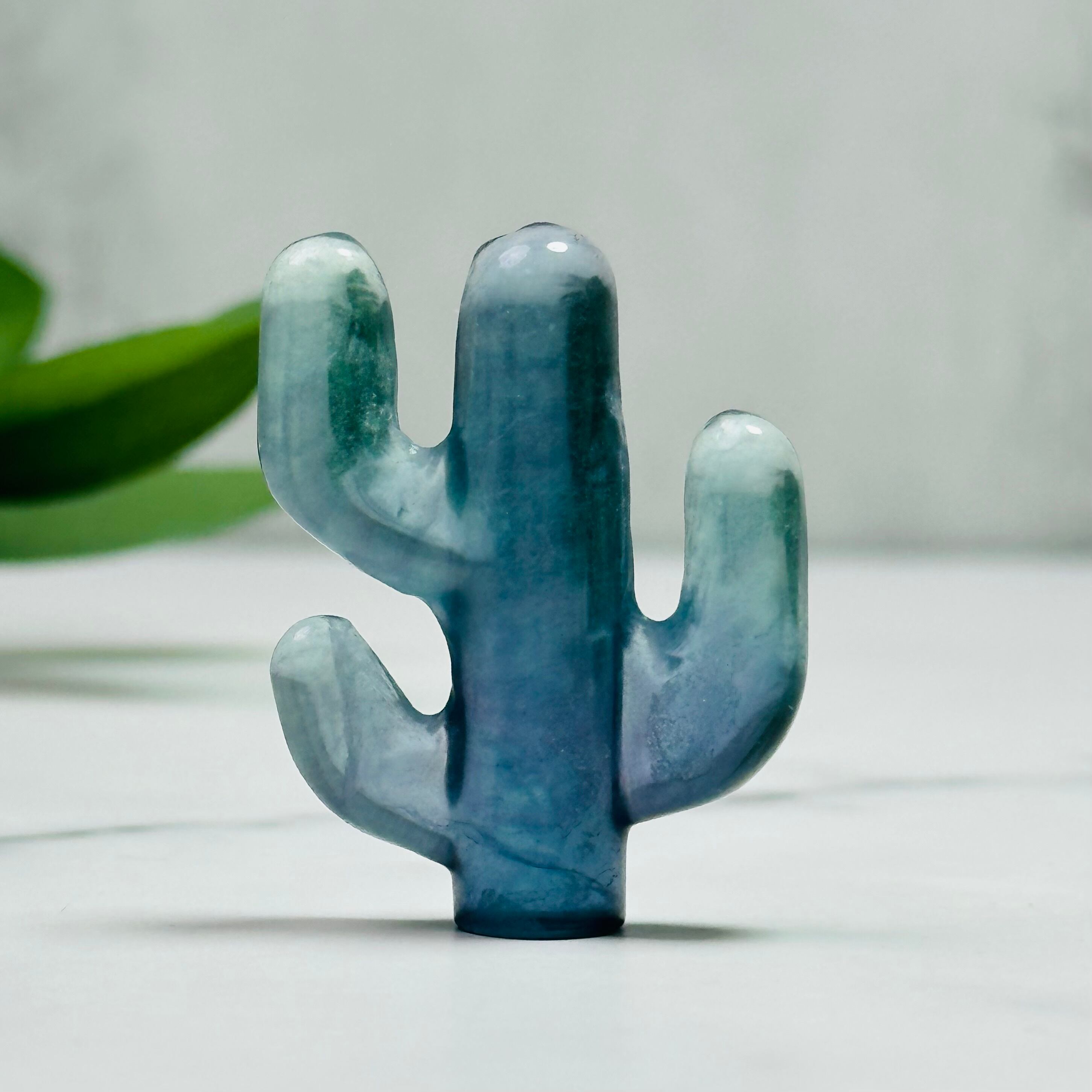 透明感あふれる色合いが美しいフローライトのサボテン。ユニークなサボテンモチーフは遊び心がありながらも、天然石ならではの上品さを兼ね備えています。窓辺やデスクに可愛い癒しの存在をお届けします。