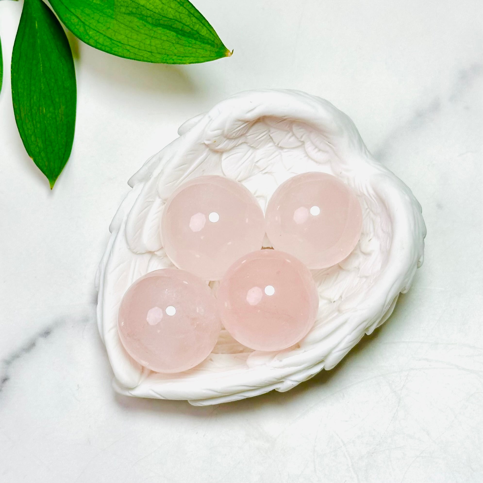 淡いピンクが優しく輝くローズクォーツのミニスフィア。お部屋に並べて飾ったり、ポーチに入れて持ち歩いたり、プレゼント用に分けても素敵です。