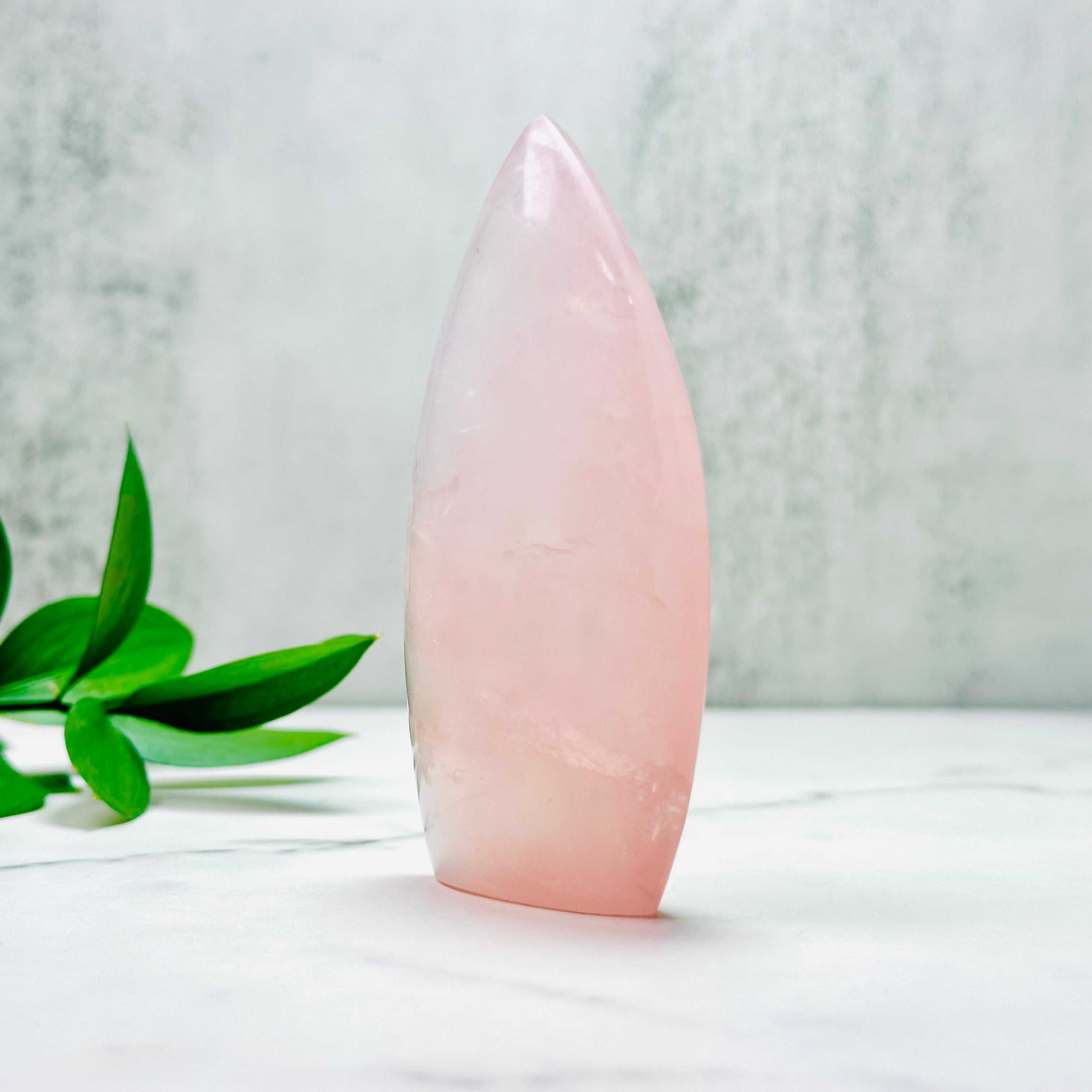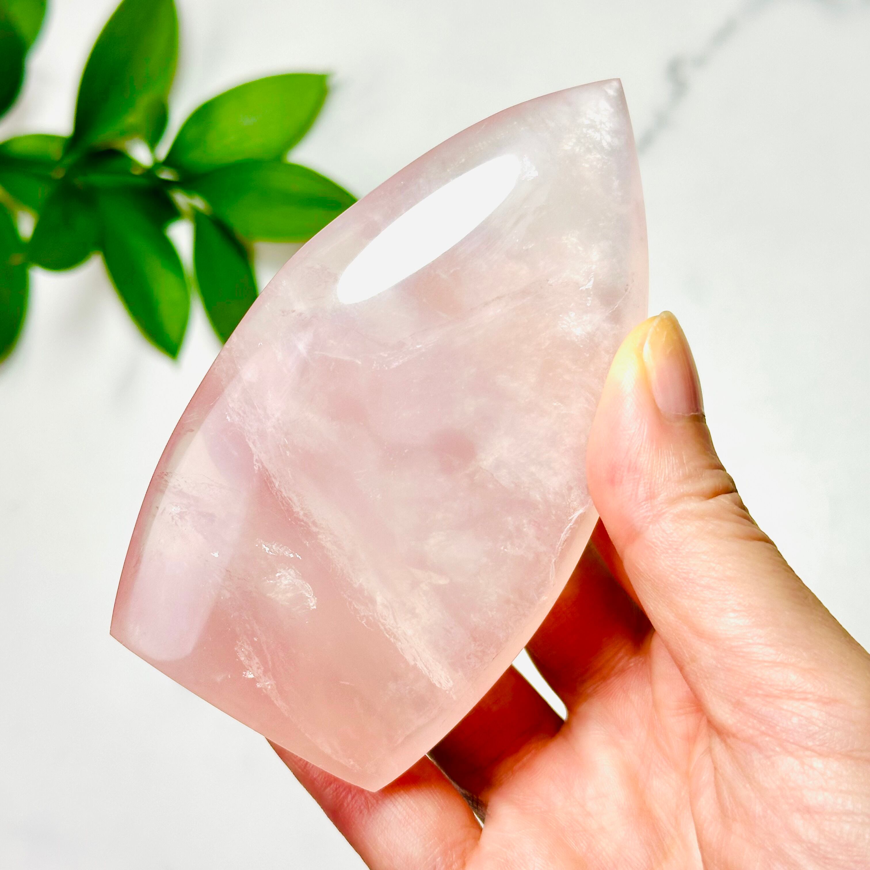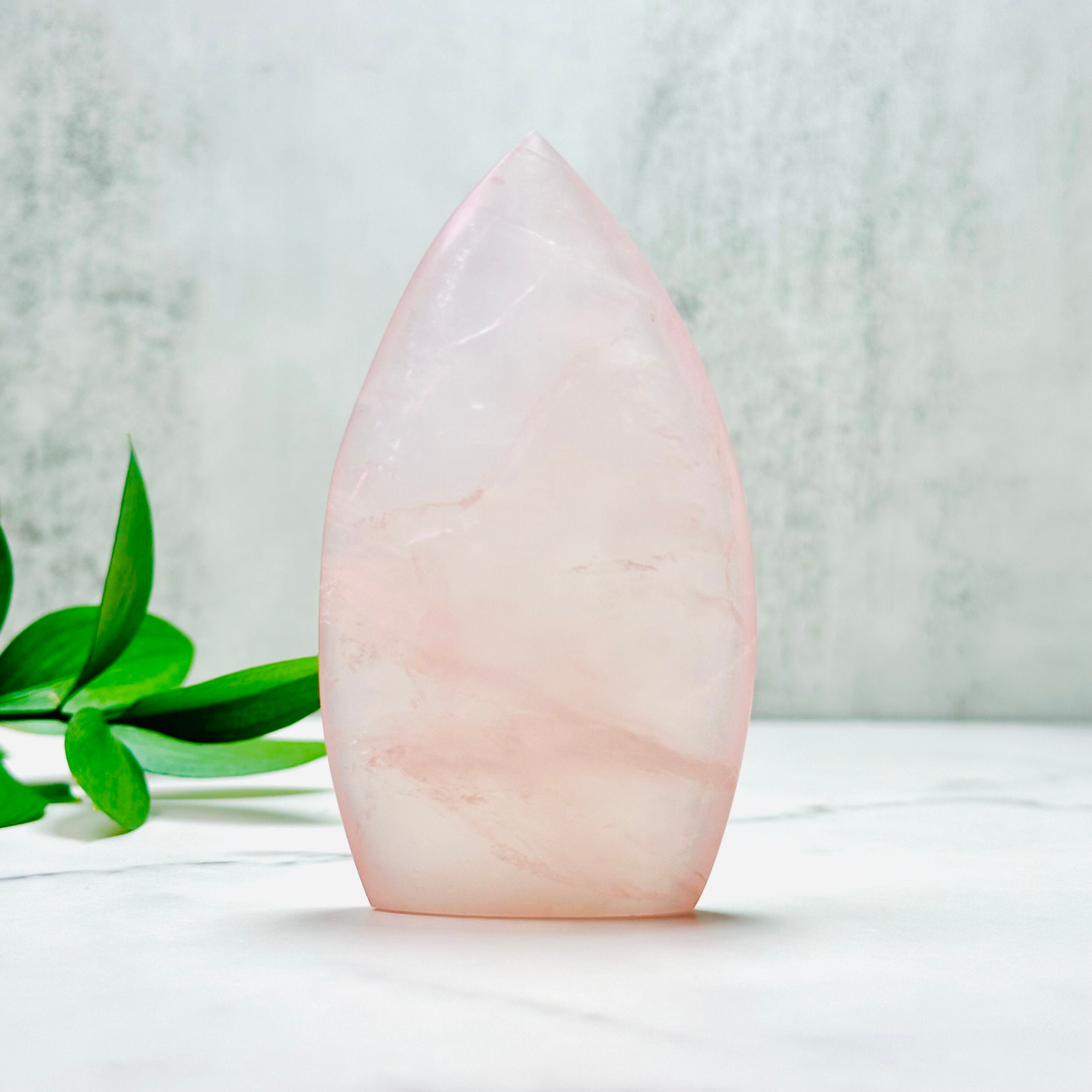 ピンクの色合いが優しく輝く、大人可愛いローズクォーツのフリーフォーム。光の下でキラキラと輝きます。インテリアにすっとなじむフォルムで、お部屋をやわらかな雰囲気に包み込んでくれます。