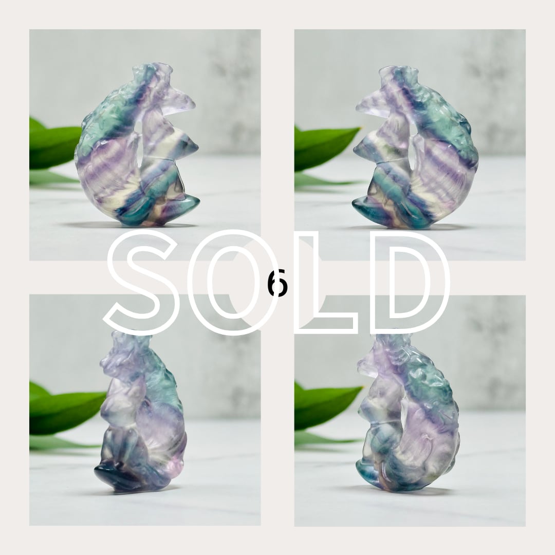 美しいフローライトを丁寧に彫刻した、月と九尾の狐のカービング。透明感のあるブルーやグリーン、パープルのグラデーションが重なり合い、まるで夜空の幻想的な情景を閉じ込めたような神秘的な雰囲気を放ちます。九尾の狐は古くから神秘の存在として伝えられ、その気品ある姿が天然石の美しさと見事に調和しています。デスクやお部屋のインテリアに飾れば、物語性のある癒しの空間を演出してくれる特別な一点です。コレクションや贈り物にもおすすめです。