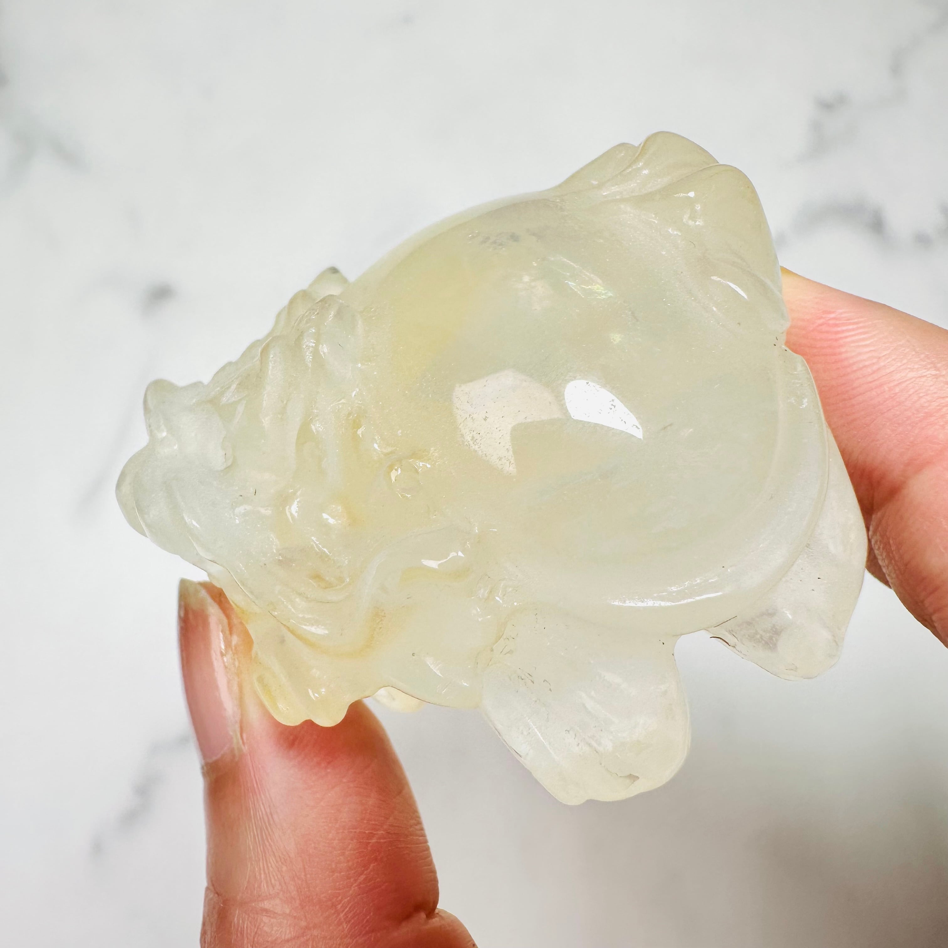 柔らかなオレンジの輝きが美しいゴールデンヒーラーのロングイ(龍亀)。龍の力強さと亀の安定感をあわせ持つ縁起モチーフとして人気があり、お部屋に飾るだけで特別な存在感を放ちます。透明感の中に浮かぶ黄金色のニュアンスは光を受けて優しく煌めき、インテリアとしても上品で華やかな印象に。玄関やリビング、書斎に飾れば、空間を明るく彩ってくれるおすすめの天然石オブジェです。
