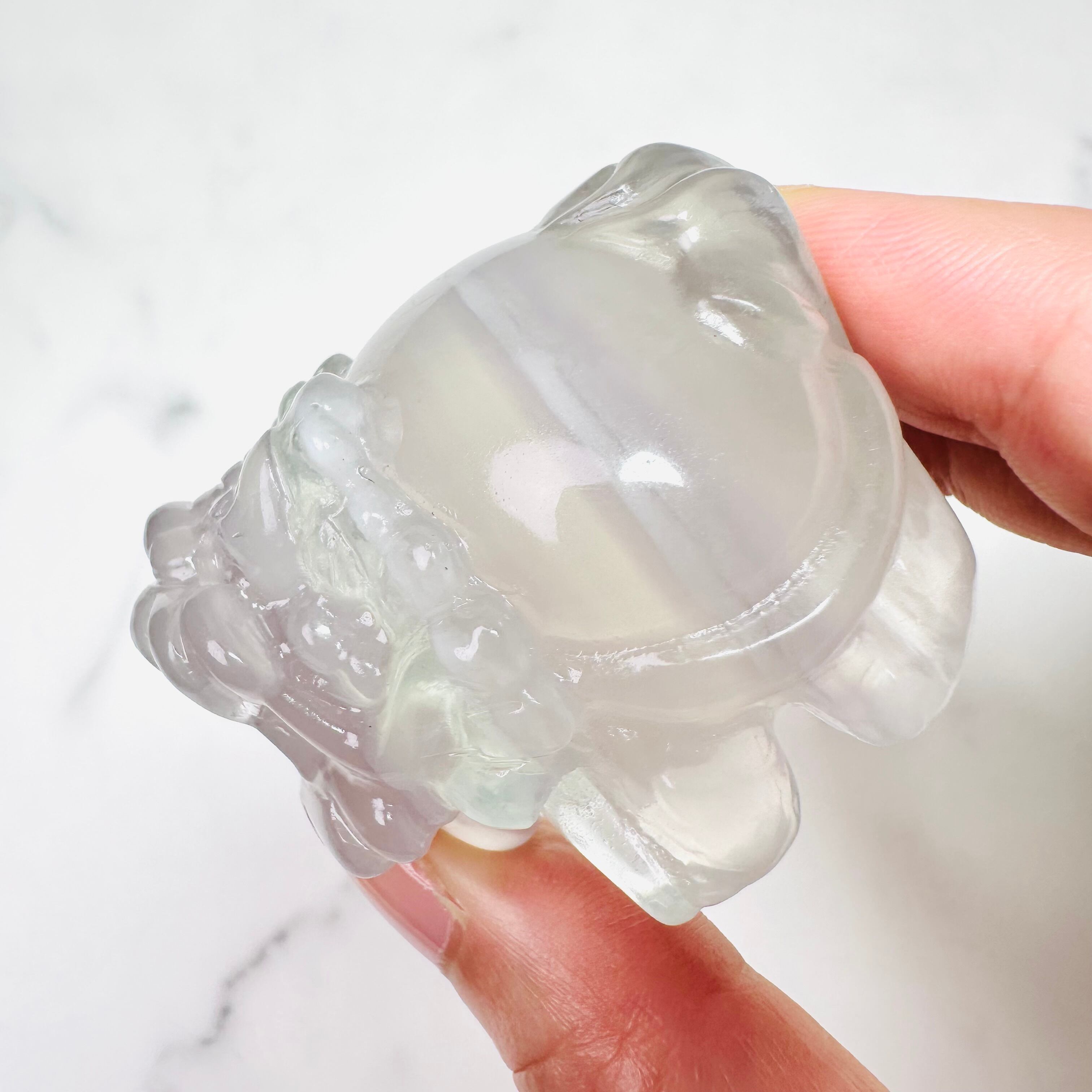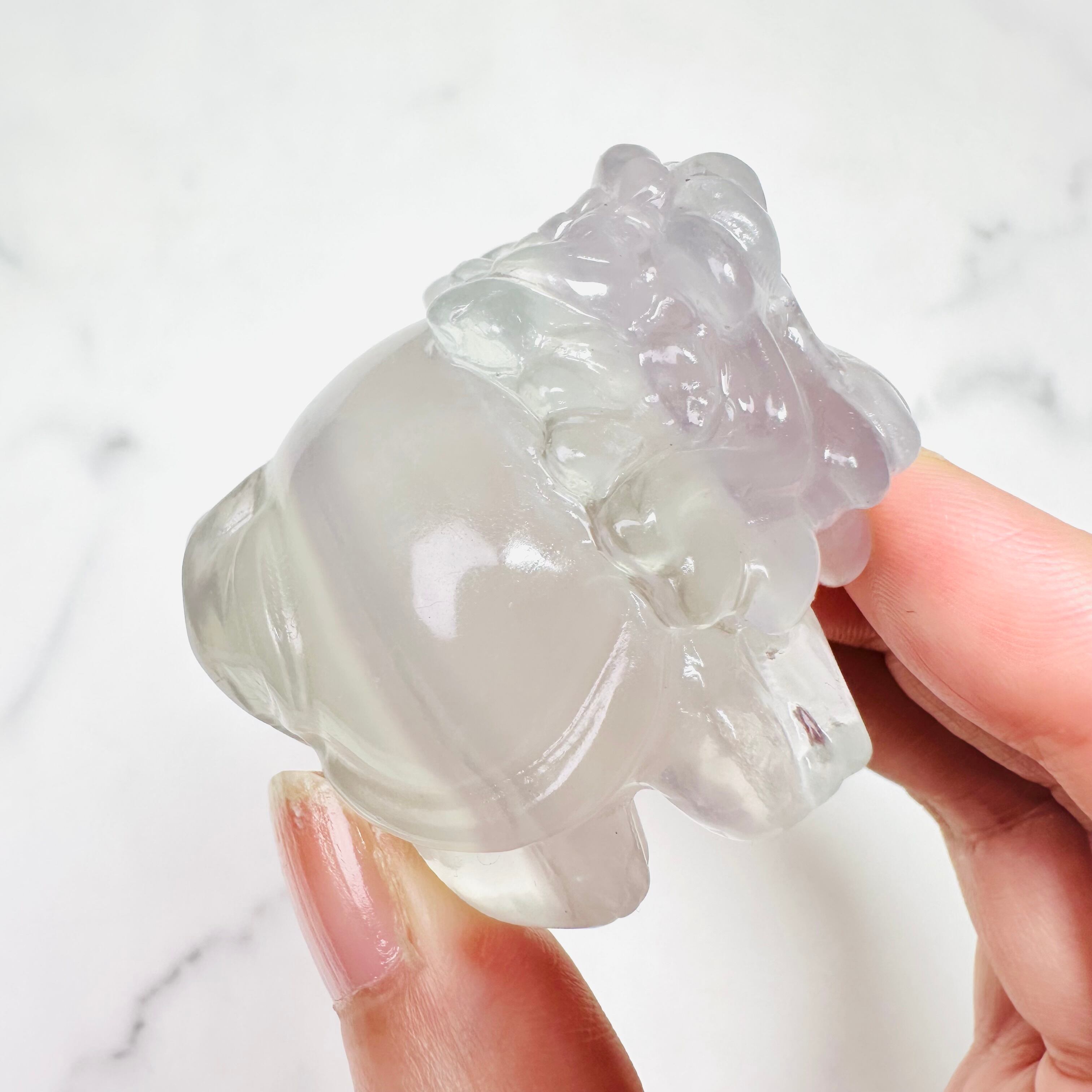 淡いラベンダーやグリーンが溶け合うように広がる幻想的なイットリウムフローライトのロングイ(龍亀)。一筋の白いラインがフリルのようで可愛らしい甘さもあります。龍の力強さと亀の安定を併せ持つ縁起モチーフで、存在感のある輝きがお部屋に神秘的な雰囲気を与えます。光にかざすと優しい透明感と独特の色彩が浮かび上がります。リビングや玄関、書斎に飾り良い運気を呼び込んでください。