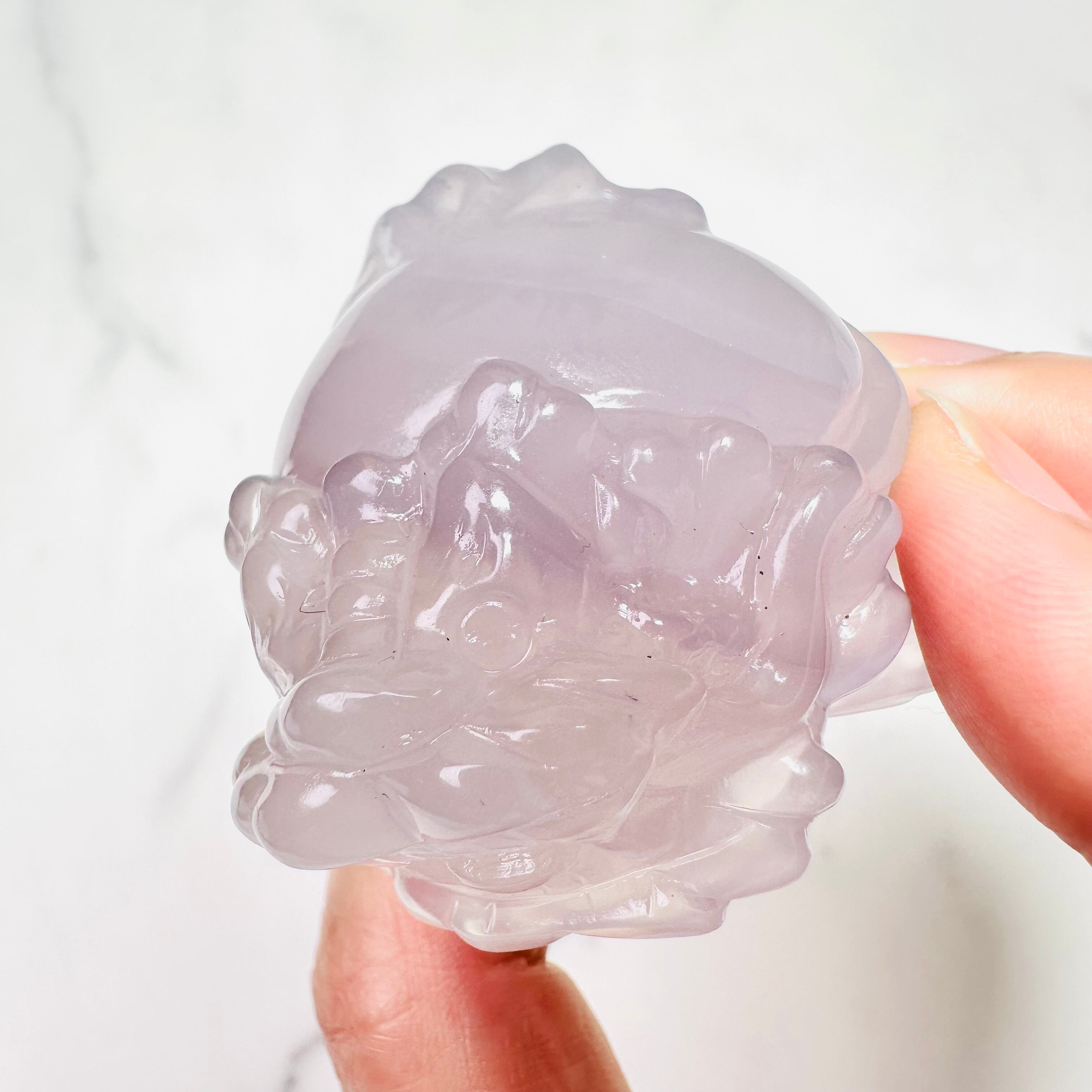 まろやかなラベンダーカラーが幻想的なイットリウムフローライトのロングイ(龍亀)。龍の力強さと亀の安定を併せ持つ縁起モチーフで、存在感のある輝きがお部屋に神秘的な雰囲気を与えます。光にかざすと優しい透明感と独特の色彩が浮かび上がり、リビングや玄関、書斎などに飾れば特別な癒しの空間に。