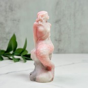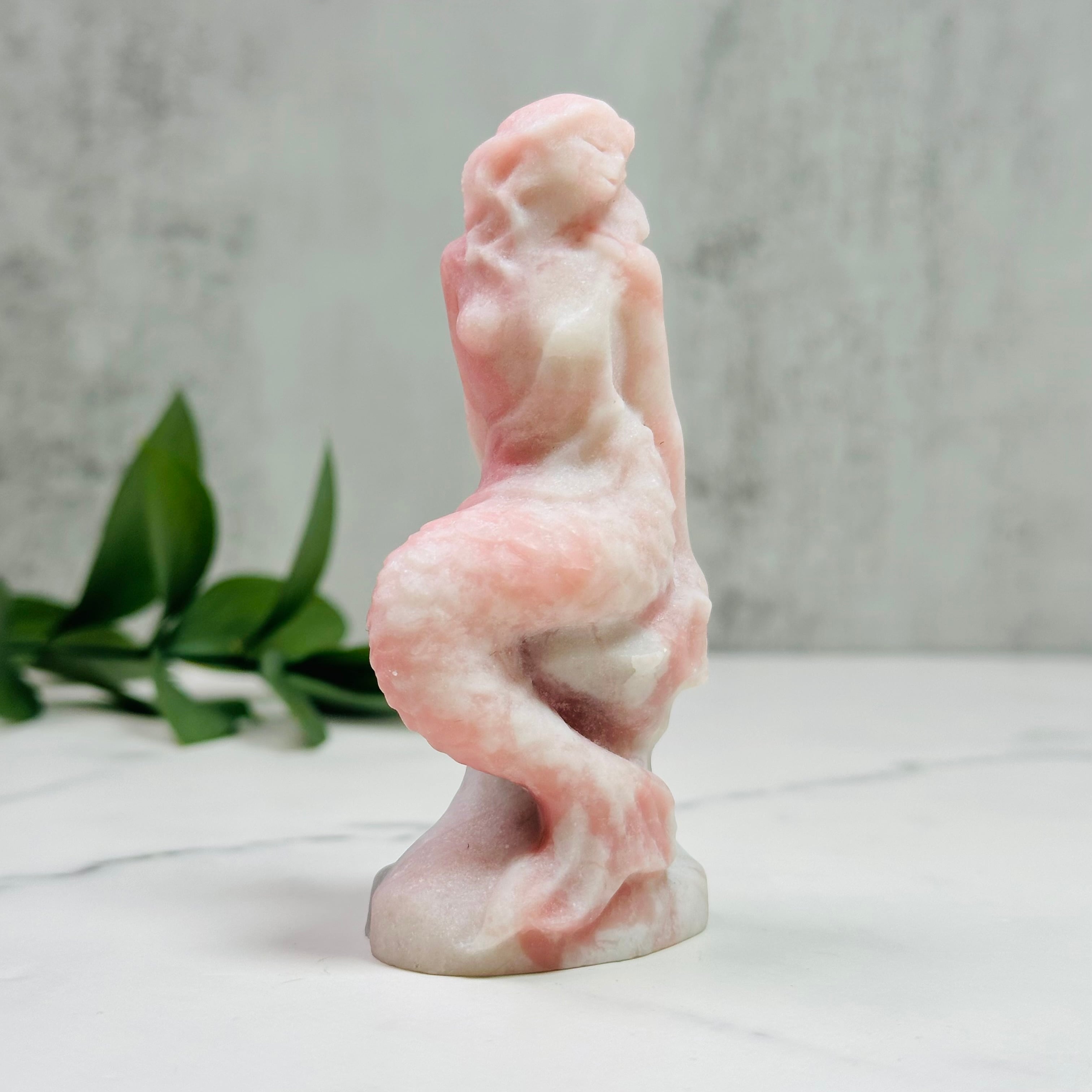 柔らかなピンク色が魅力のピンクオパールのマーメイド。優しい色合いと愛らしい姿は、眺めているだけで癒されます。デスクやリビング、ベッドサイドにそっと飾れば、特別な癒しの空間に。大切な方への贈り物にもぴったりの天然石オブジェです。