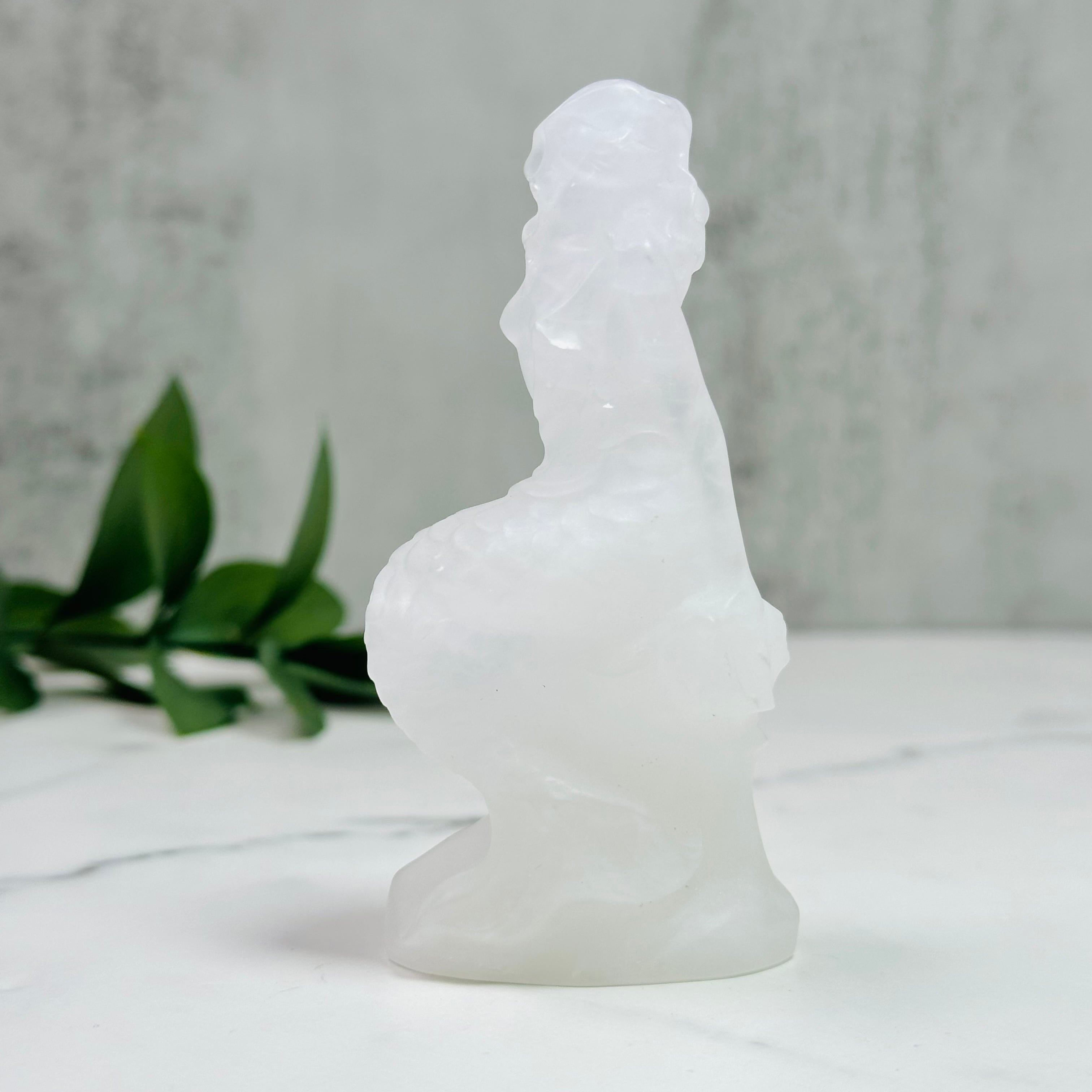 清らかなホワイトカラーが美しいホワイトオニキスのマーメイド。滑らかな質感とシンプルで上品な色合いは、お部屋のインテリアに洗練された印象を与えます。玄関やリビング、ワークスペースに置けば優雅にやさしく空間を彩ります。神秘的なモチーフのマーメイドは、贈り物やコレクションアイテムとしてもおすすめです。