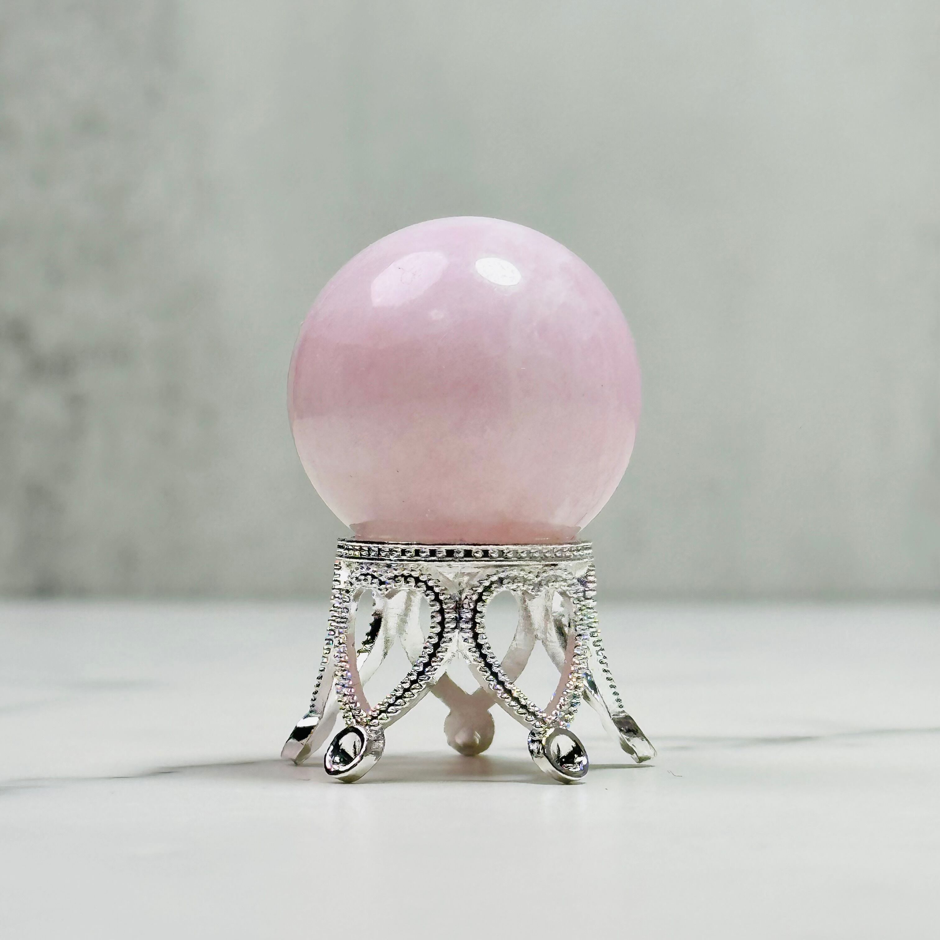 淡いピンク色がやわらかく輝くモルガナイトのスフィアが待望の再入荷です。可憐で透明感のある優しいピンクの色合いが、お部屋にやさしい雰囲気をもたらしてくれます。