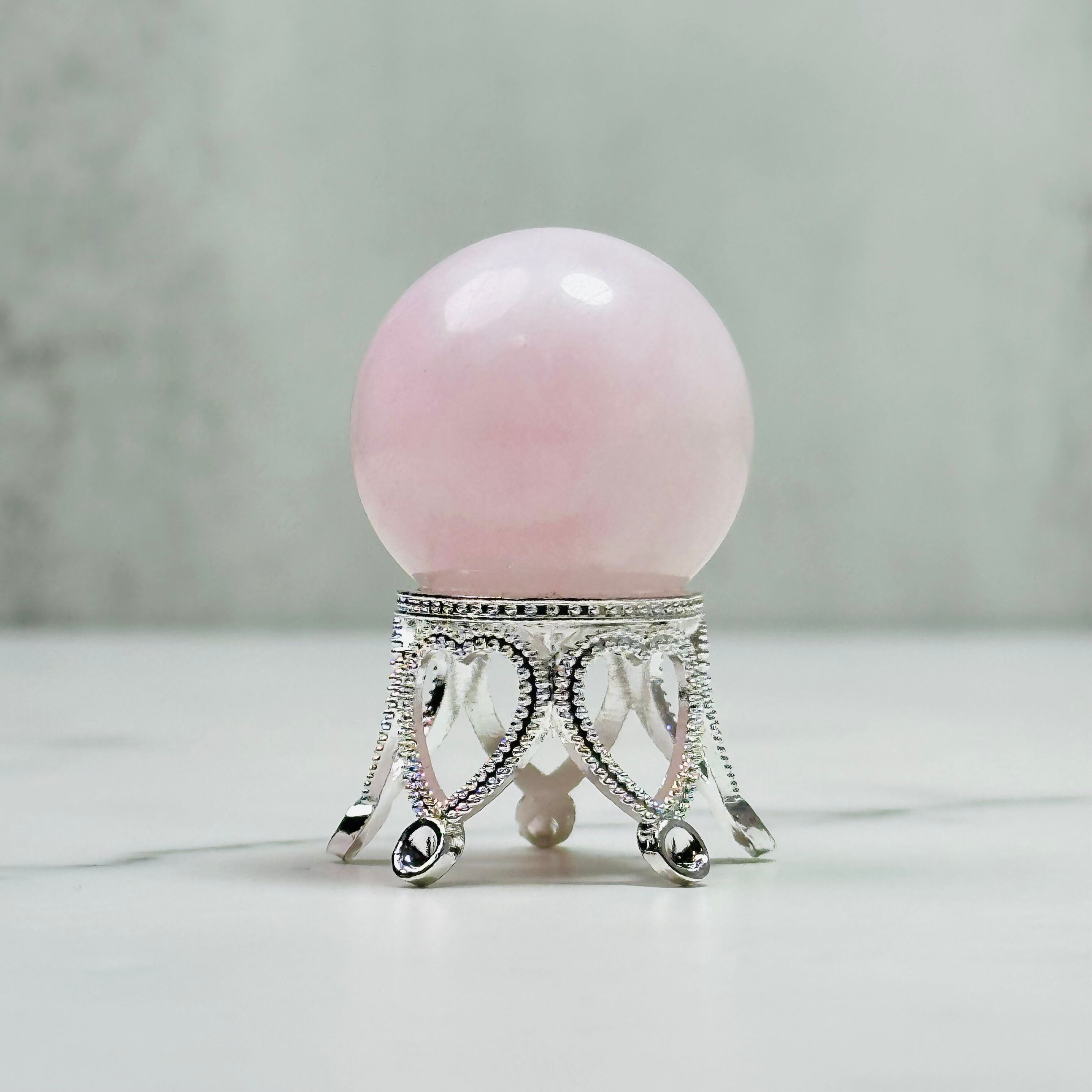 淡いピンク色がやわらかく輝くモルガナイトのスフィアが待望の再入荷です。可憐で透明感のある優しいピンクの色合いが、お部屋にやさしい雰囲気をもたらしてくれます。