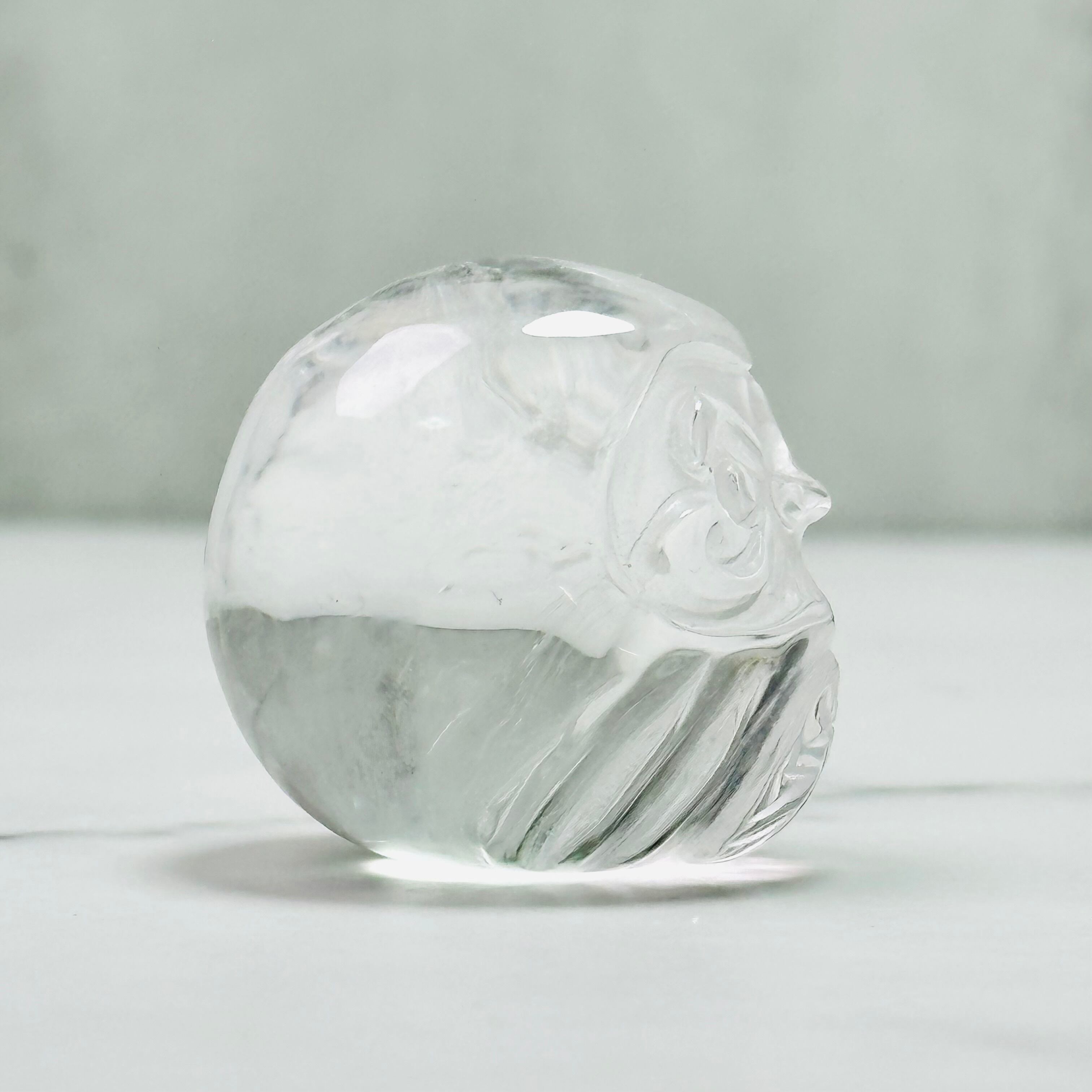 透明感のある水晶を丁寧に彫刻した、可愛らしいだるまのオブジェ。だるまは「七転び八起き」の縁起物として知られ、忍耐と再生の象徴です。水晶の澄んだ輝きと相まって、インテリアとして飾るだけでお部屋に清らかな雰囲気を添えてくれます。玄関やデスク、リビングに置けば、シンプルながらも特別感のあるアクセントに。贈り物としてもおすすめの天然石アイテムです。