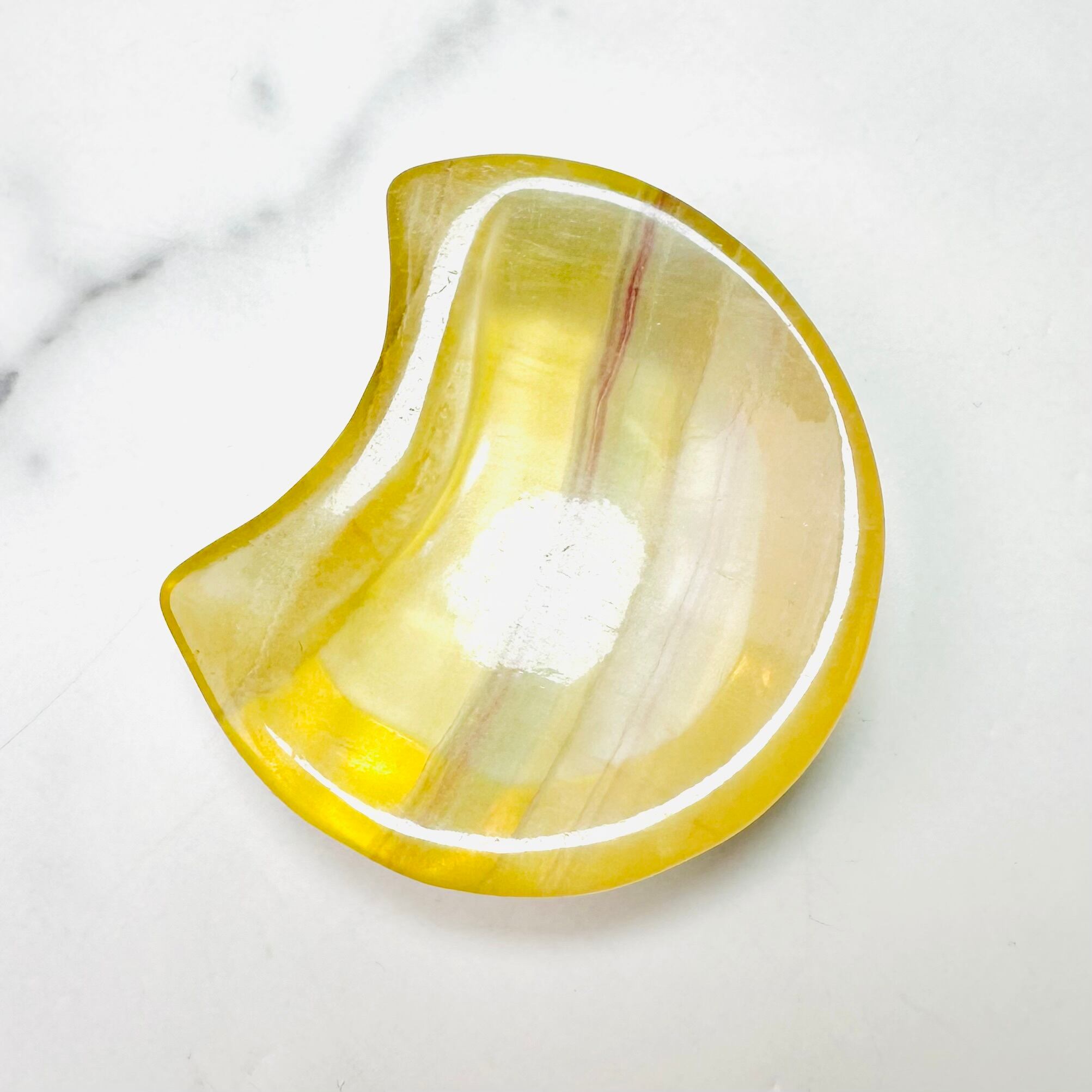 癒しの天然石雑貨|イエローフローライト月型トレイ