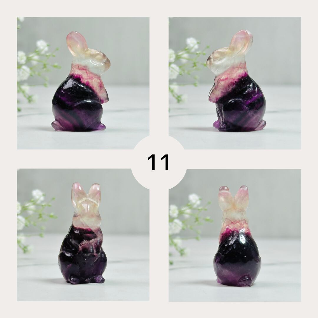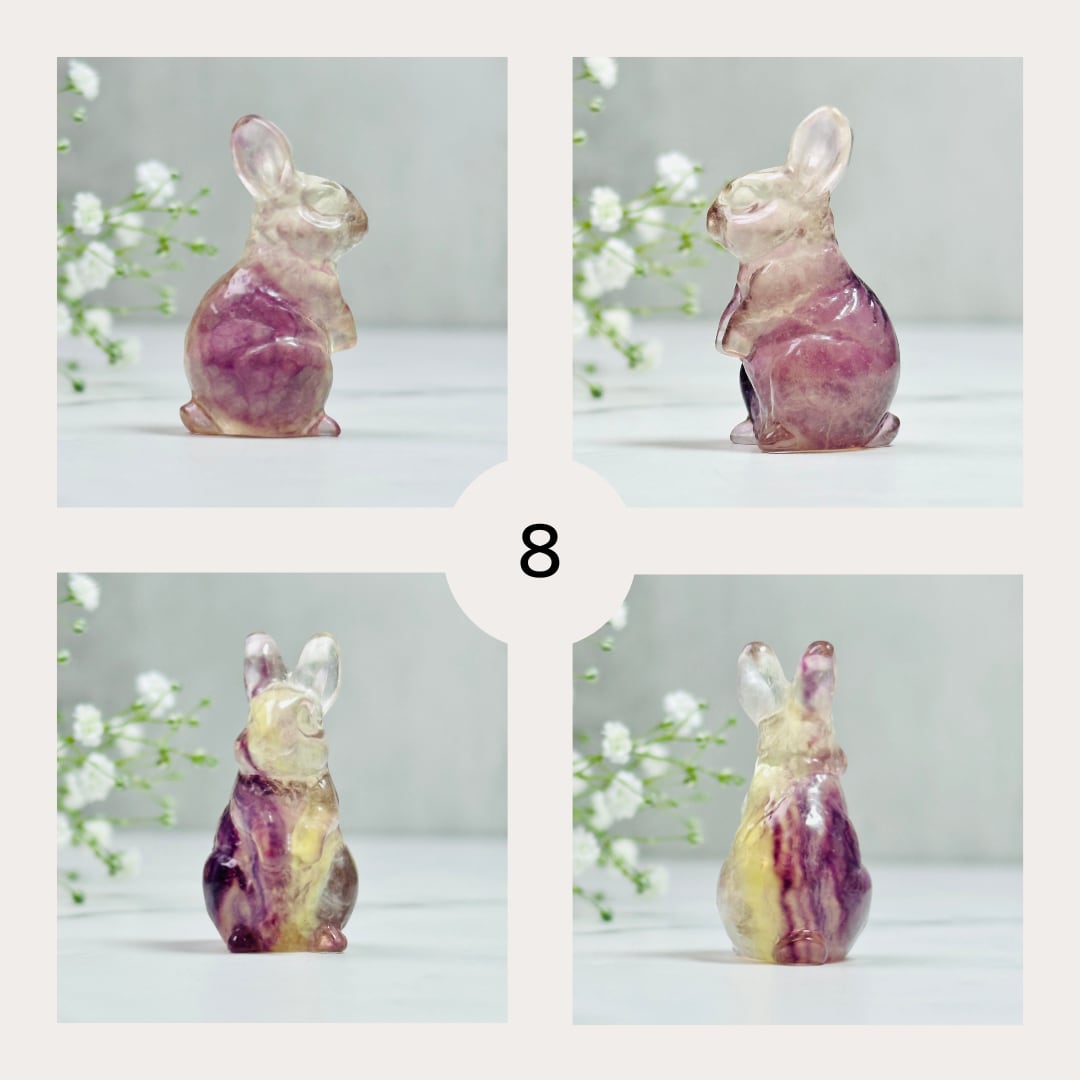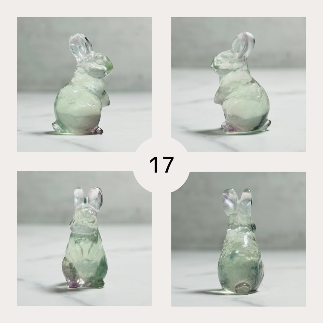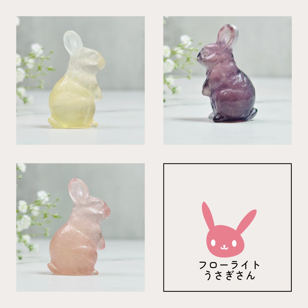 聡明な表情とピンと立ったお耳がとても可愛らしいフローライトのうさぎさん。ちょこんと佇む姿は、お部屋に癒しと遊び心をプラスしてくれます。ナチュラルテイストのインテリアやデスク周りのアクセントとしてもおすすめ。大人可愛い雰囲気で、ギフトにも喜ばれる一点物です。