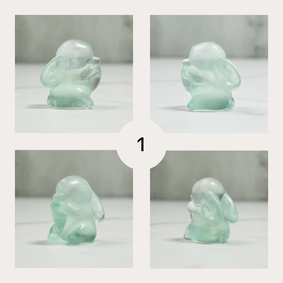 可愛らしいうさぎのフローライトミニカーヴィング。小さな手でにんじんを抱えた姿が愛らしく、見る人の心を和ませてくれます。お部屋に置くだけで優しい癒しの空間を演出します。