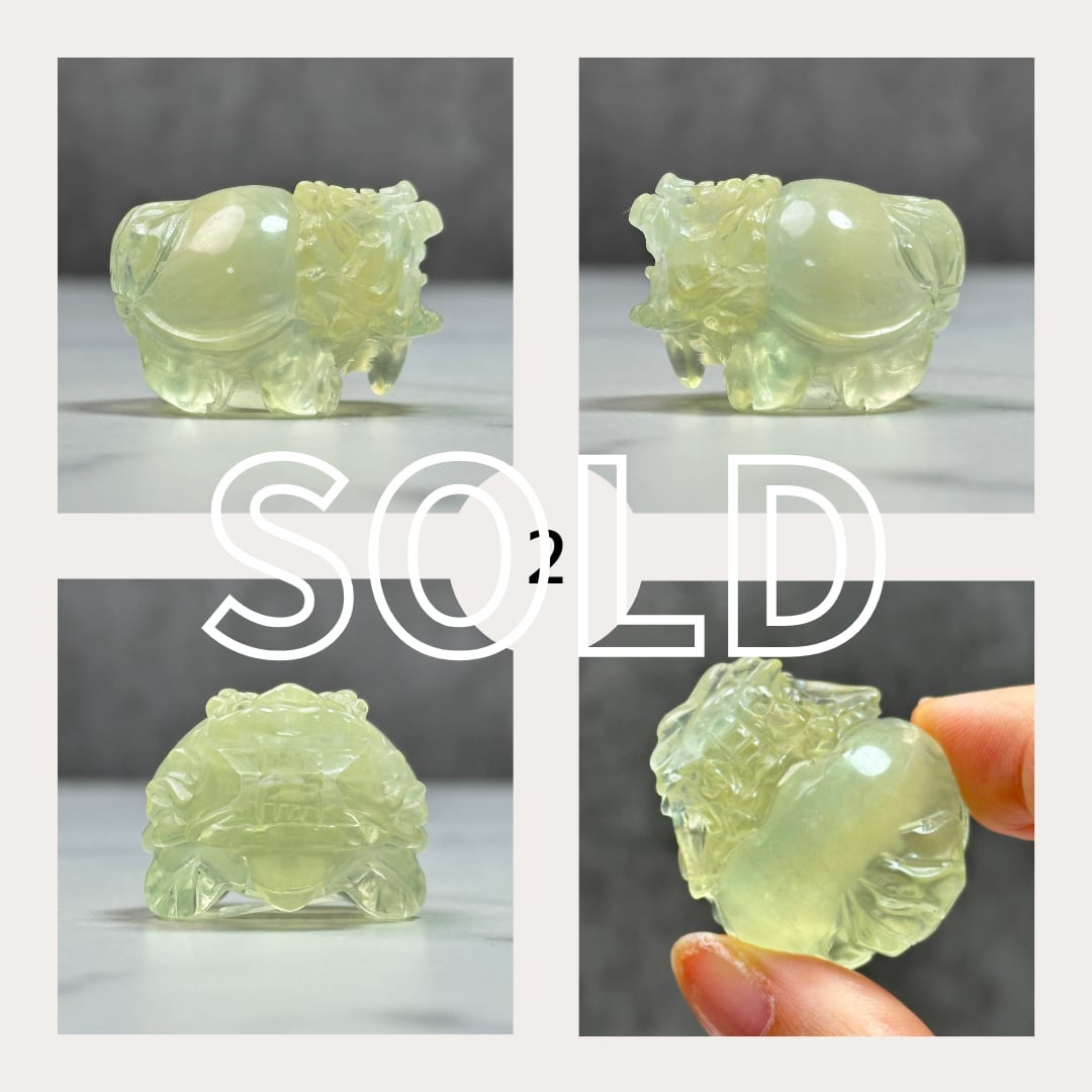 透明感あるフローライトの龍亀(ロングイ)さんです。龍の力強さと亀の安定を併せ持つロングイは、「幸運と繁栄の象徴」とされ、大変人気があります。リビングや玄関、書斎などにおすすめの開運インテリアストーンです。
