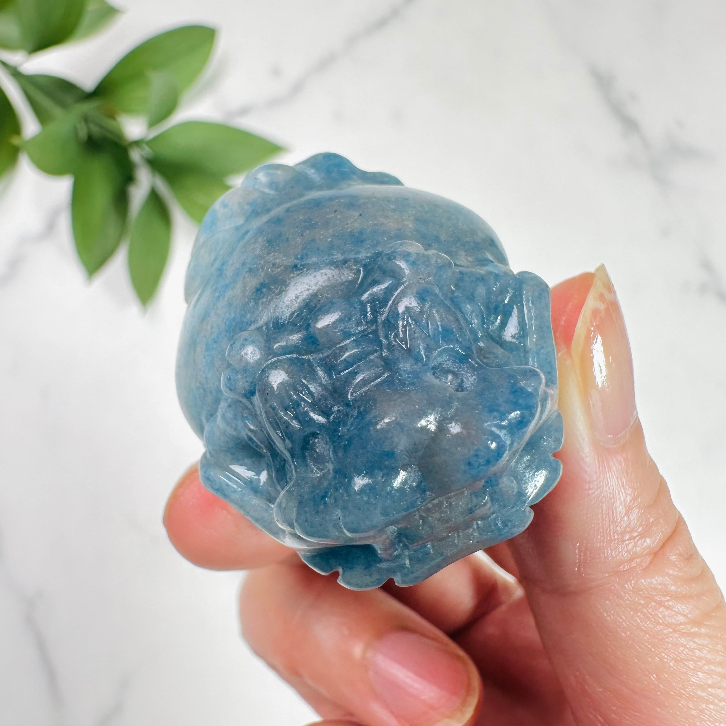 ブルーとグレーが溶け合うような色合いが可愛いトロレアイトのロングイ(龍亀)さん。トロレアイトは上品で落ち着いた雰囲気を持つ優しい波動の石です。ロングイは龍の力強さと亀の安定をあわせ持つ縁起モチーフとして知られ、最近は日本でも人気が出てきました。リビングや玄関、デスク周りに開運アイテムを置いてポジティブな運気を呼び込んでください。