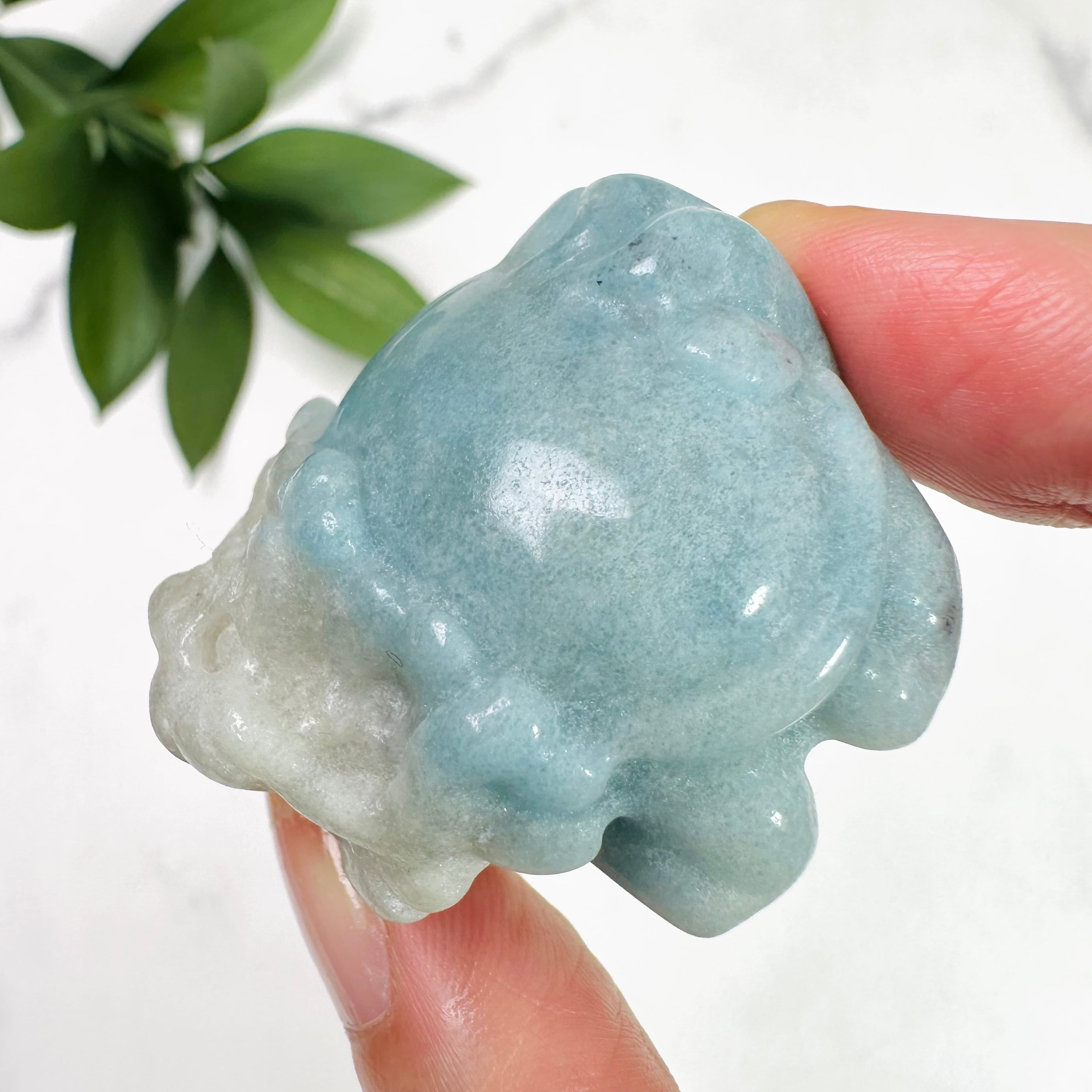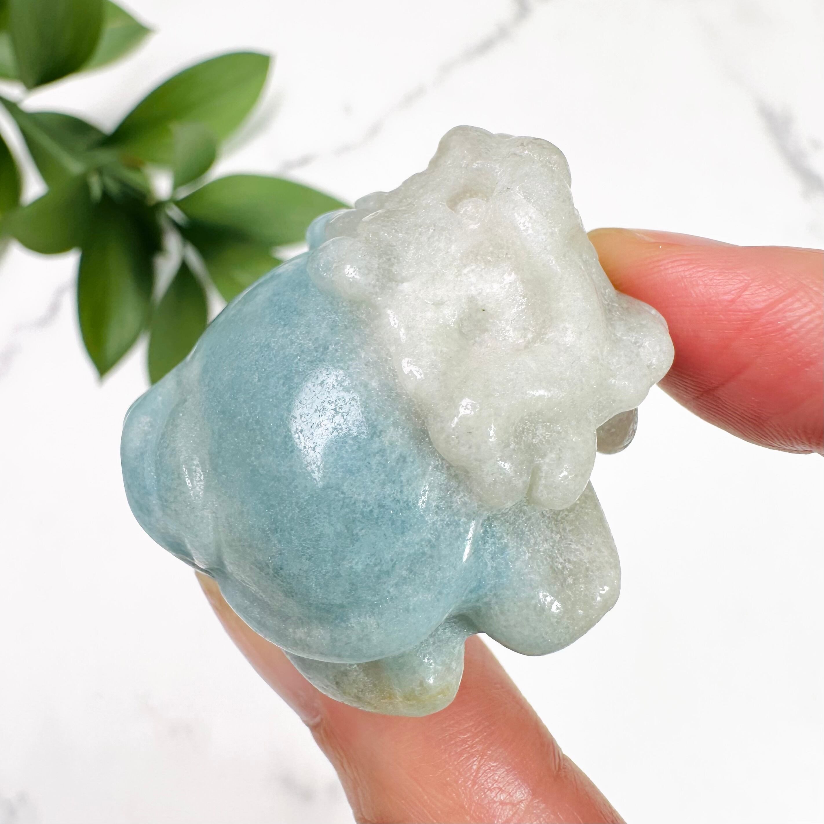 ブルーとグレーが溶け合うような色合いが可愛いトロレアイトのロングイ(龍亀)さん。トロレアイトは上品で落ち着いた雰囲気を持つ優しい波動の石です。ロングイは龍の力強さと亀の安定をあわせ持つ縁起モチーフとして知られ、最近は日本でも人気が出てきました。リビングや玄関、デスク周りに開運アイテムを置いてポジティブな運気を呼び込んでください。