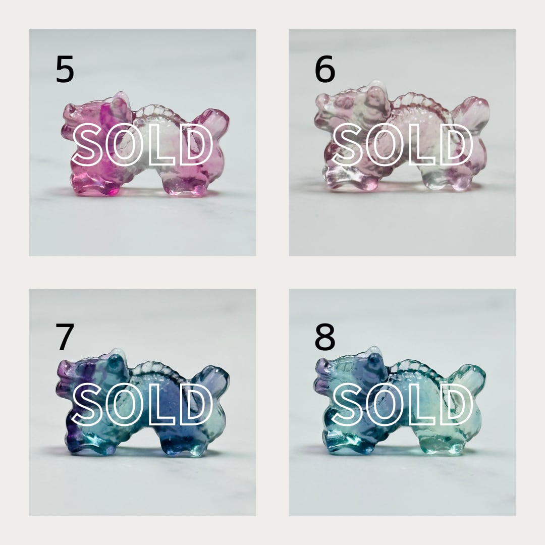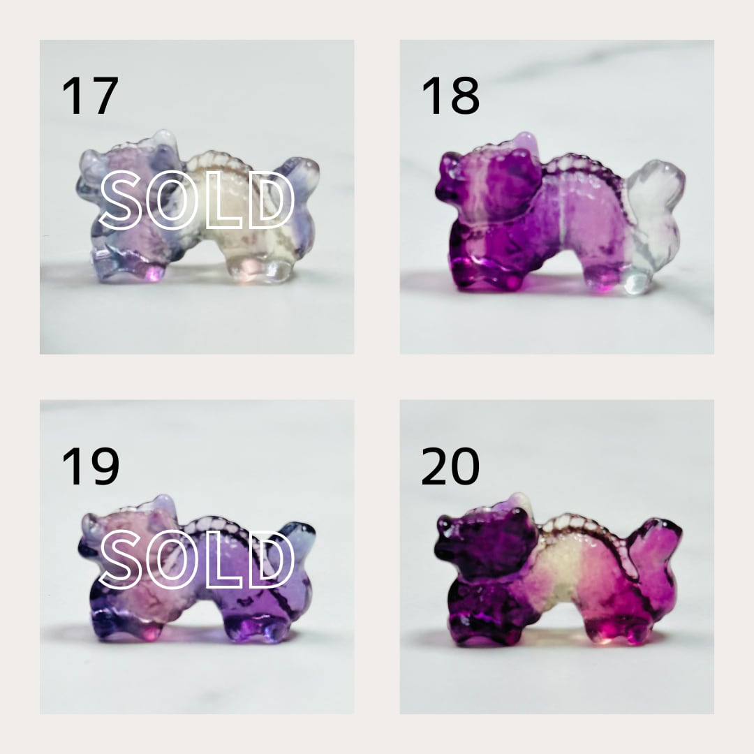透明感ある色合いが美しい、フローライトのドラゴンがミニチュアサイズで登場です。龍は天に昇るため「出世」「成功」「金運上昇」のシンボルとされます。特にビジネスや新しい挑戦を始める方のお守りとして人気があります。